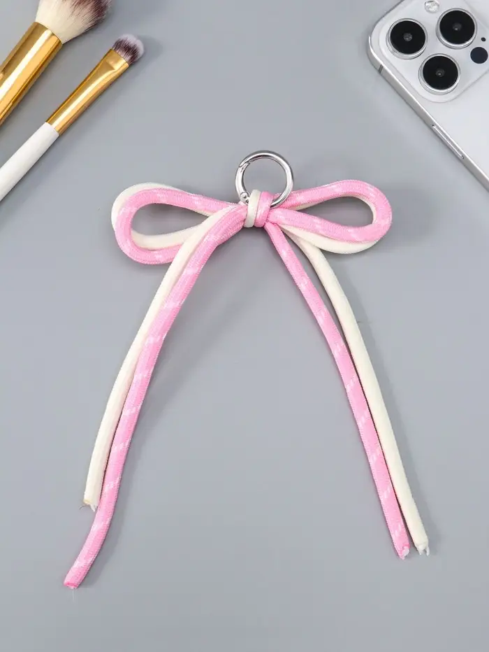 Брелок на карабине "Двойной бант" розово-белый 20х9,5х1 см