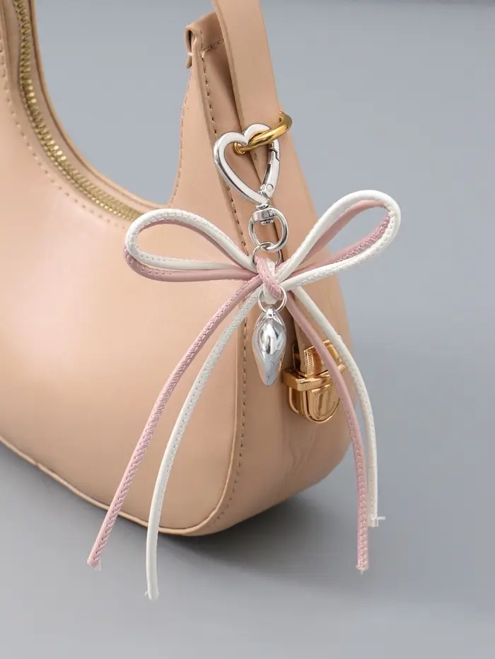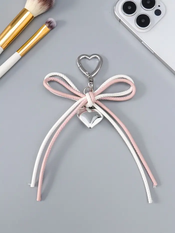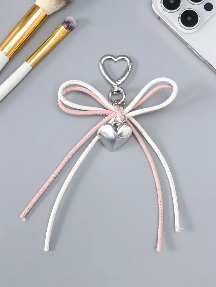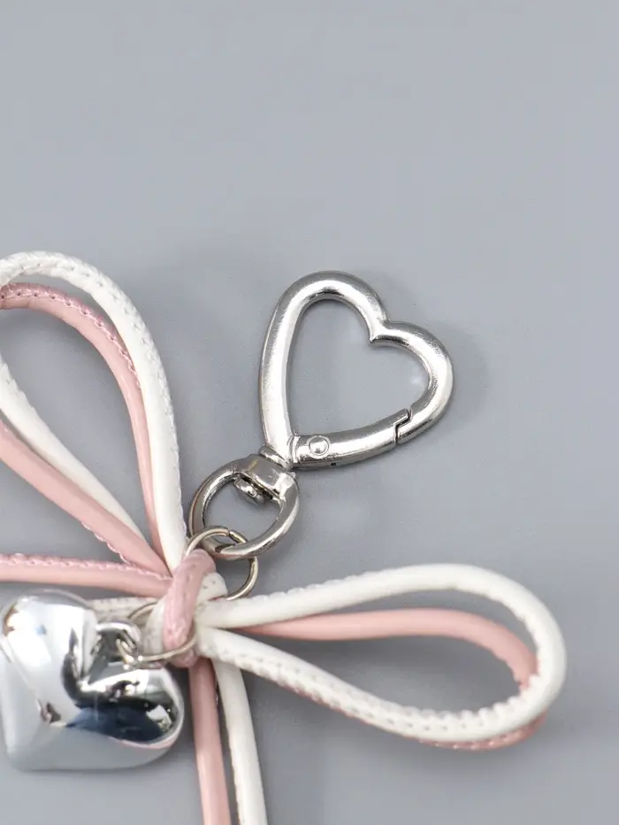 Брелок на карабине "Двойной бант с сердцем" бело-розовый 14х9х1,5 см