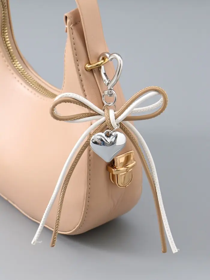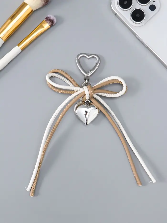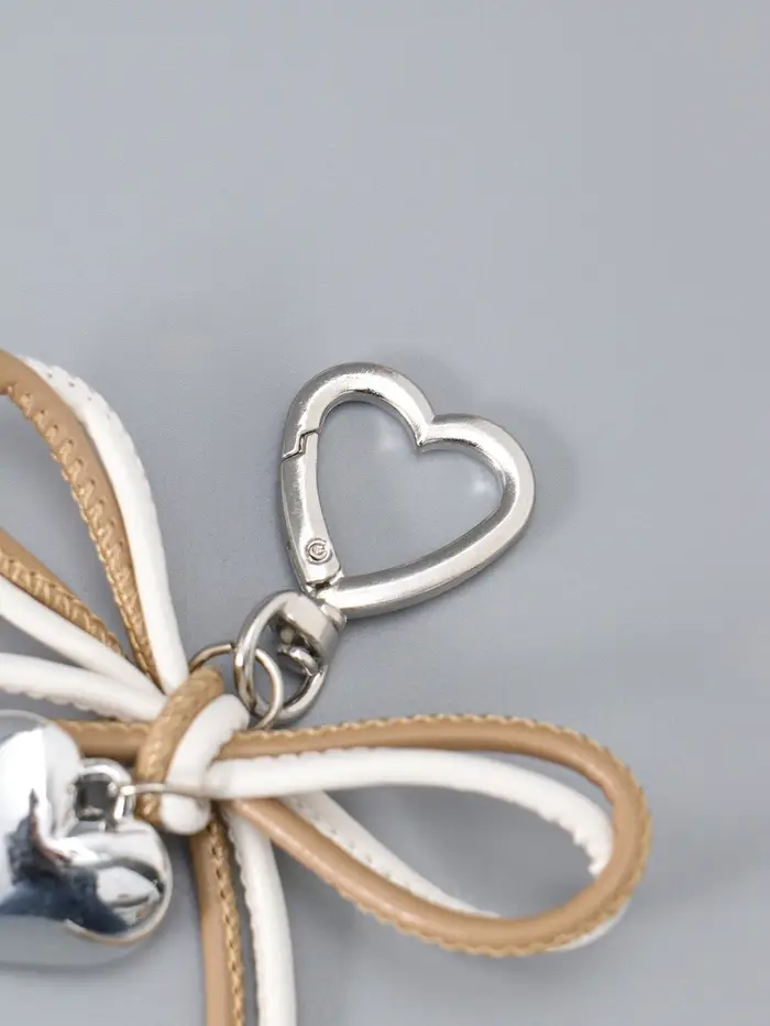 Брелок на карабине "Двойной бант с сердцем" бежево-белый 14х9х1,5 см