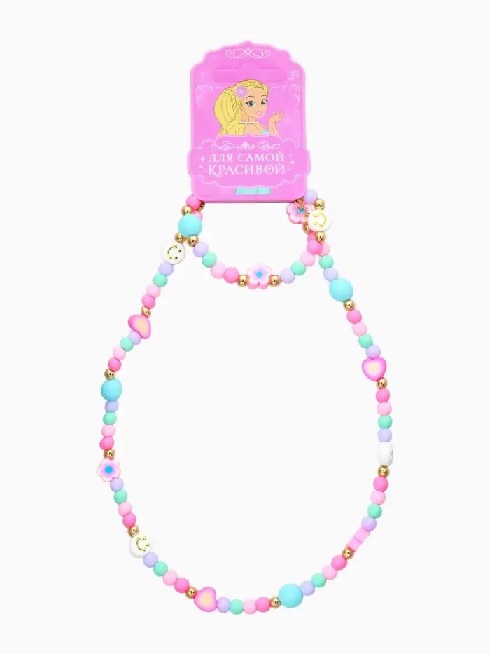 Набор детский «Выбражулька. Смайл», 2 предмета: бусы, браслет, разноцветный