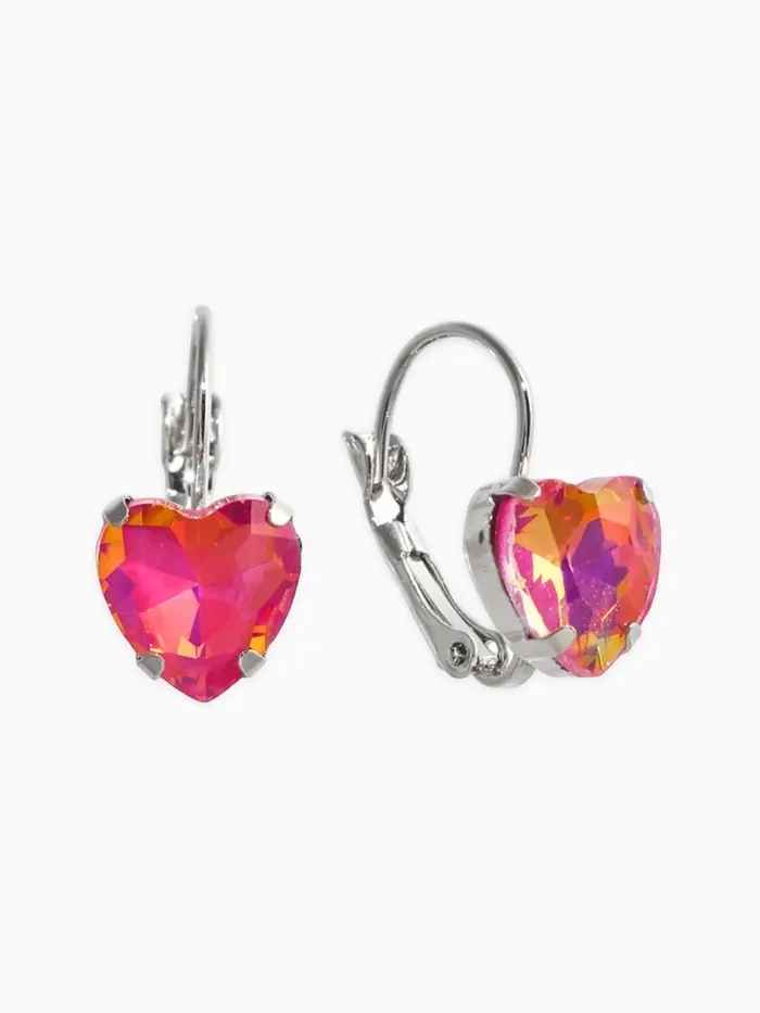 Серьги "Сердечки" лунные, цвет малиновый в серебре