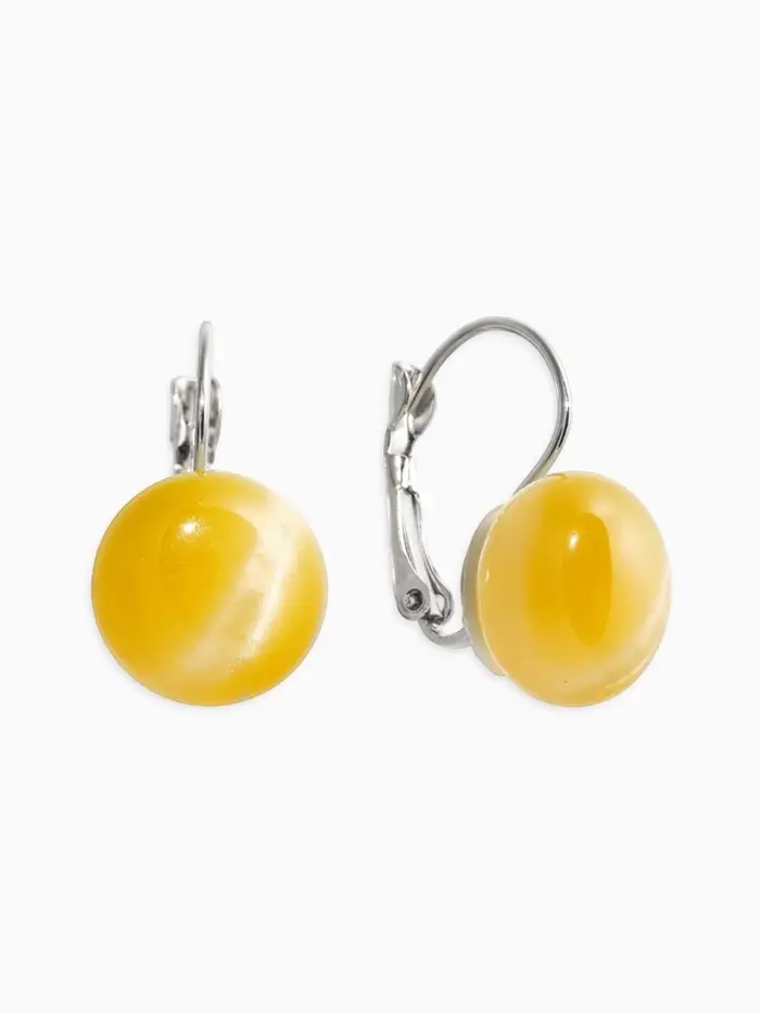 Серьги пластик "Таблетка" кошачий глаз, цвет бежевый в серебре