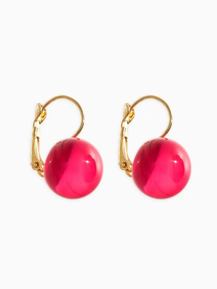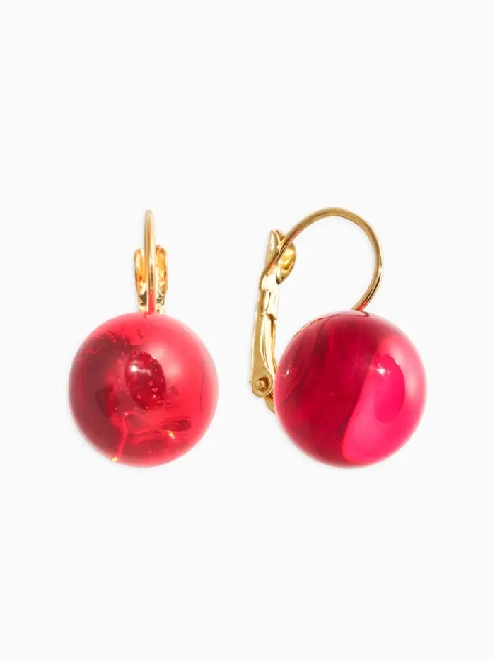 Серьги пластик "Шар №14", цвет малиновый в золоте