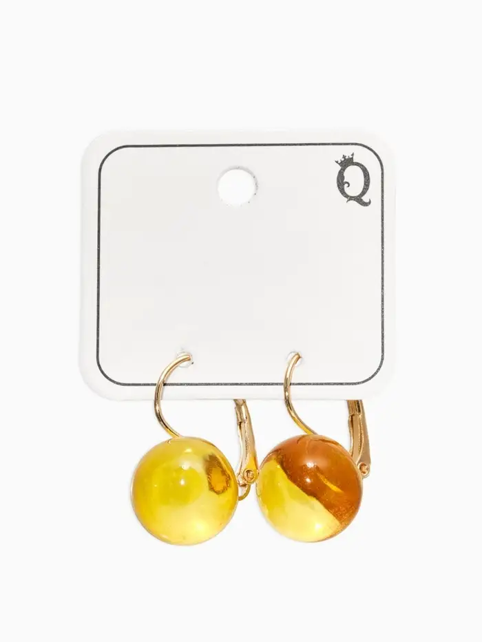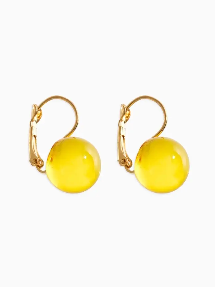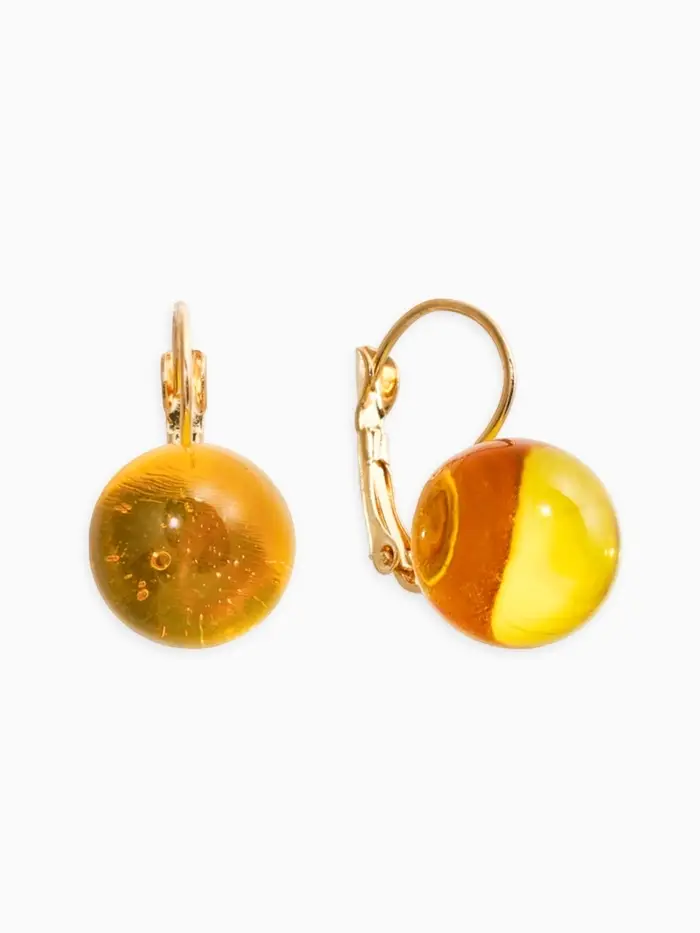 Серьги пластик "Шар №14", цвет янтарный в золоте
