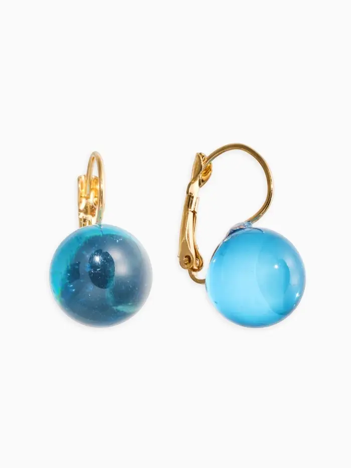 Серьги пластик "Шар №14", цвет синий в золоте