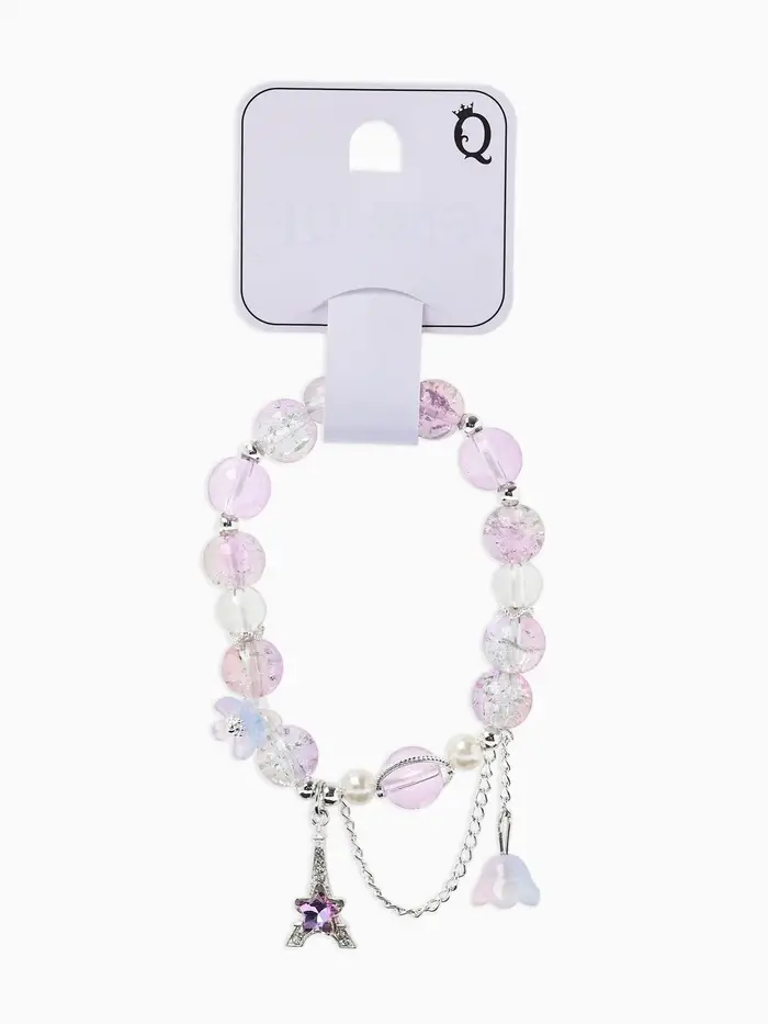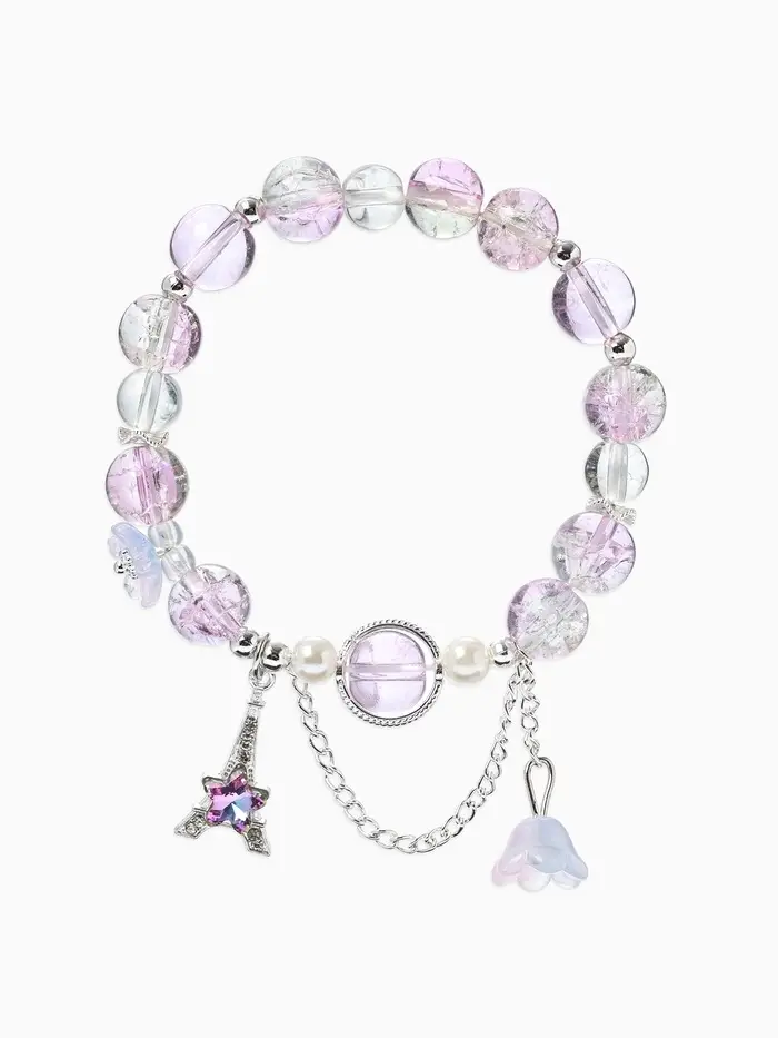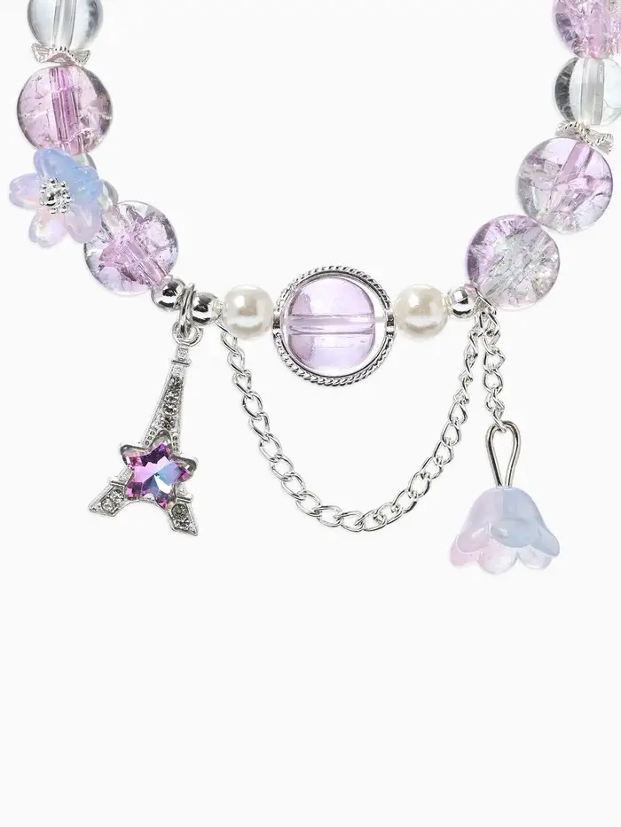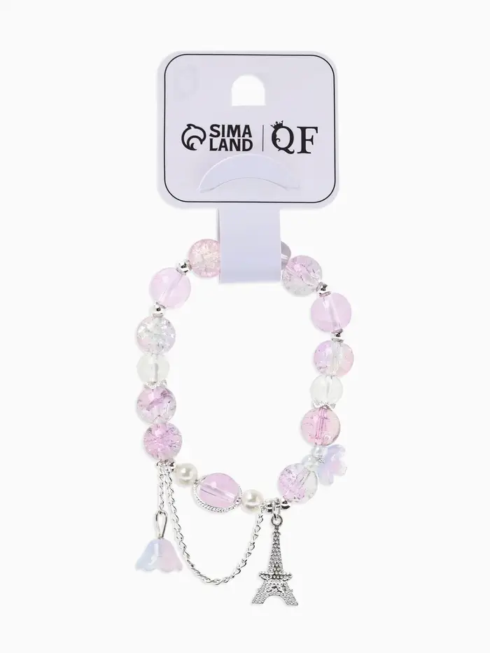 Браслет с подвесками «Сахарный. Башня с цветами», d=6 см, шар №10/8, фиолетовый, розовый в серебре