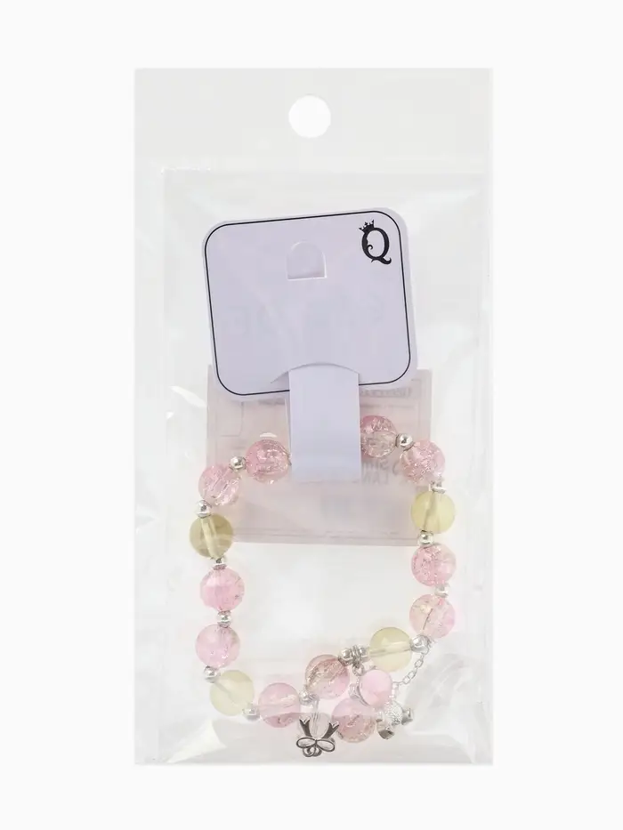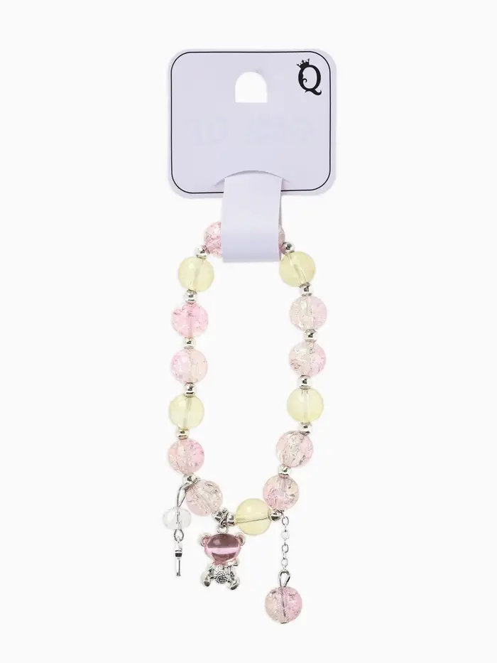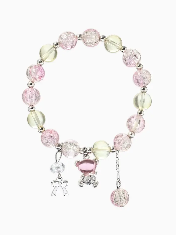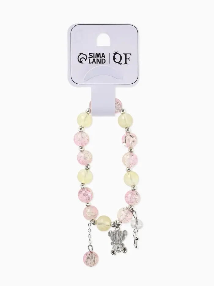 Браслет с подвесками «Сахарный. Мишка», шар №10/8, d=6 см, розовый, жёлтый в серебре