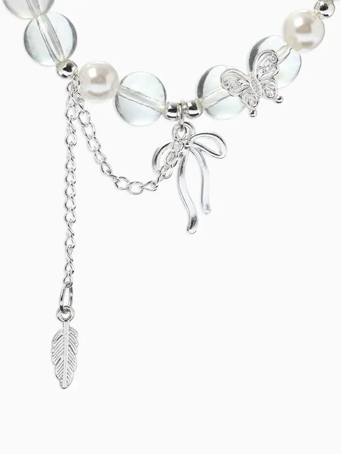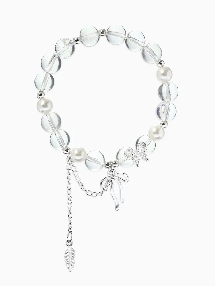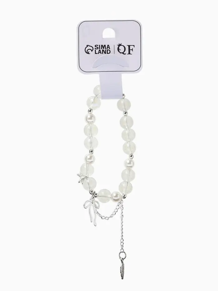 Браслет с подвесками «Сахарный. Перо и бант», d=6 см, шар №10/8, белый радужный в серебре