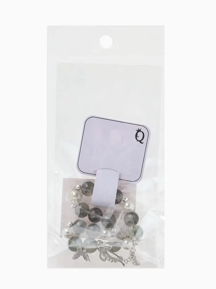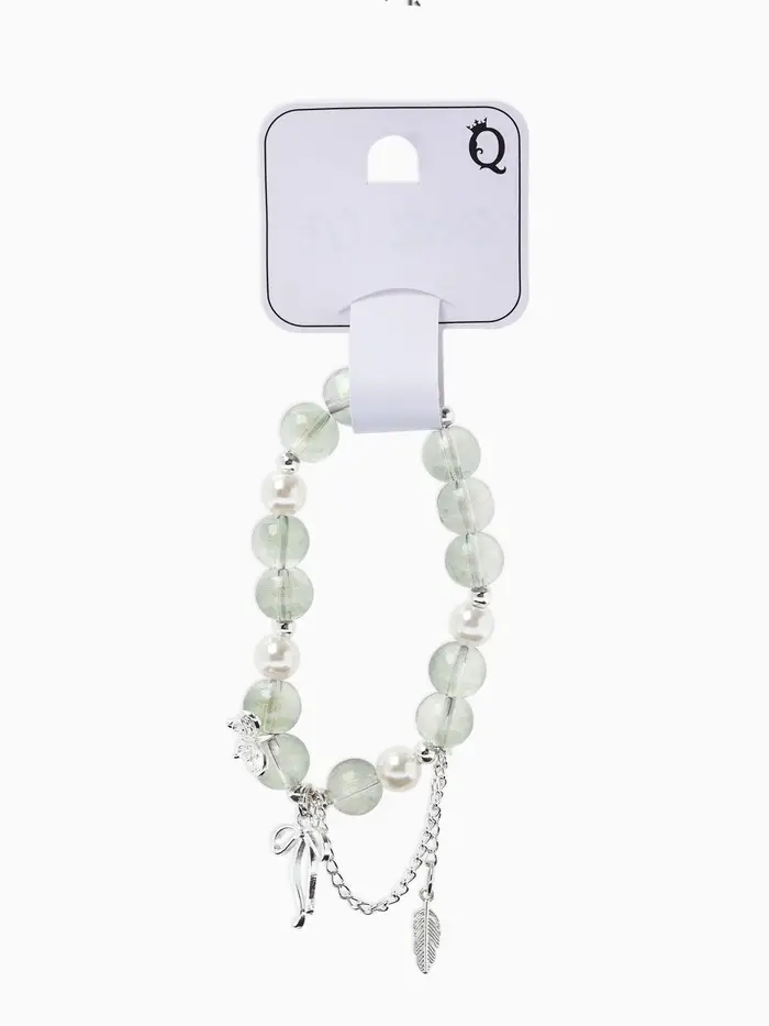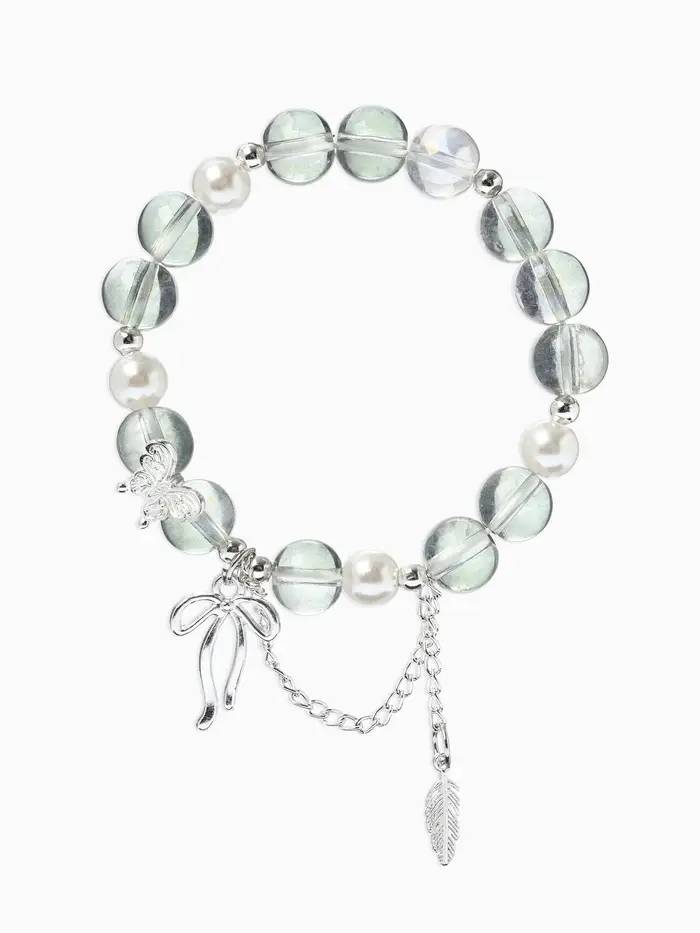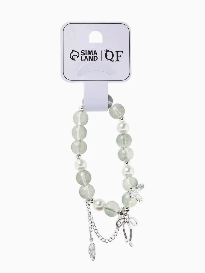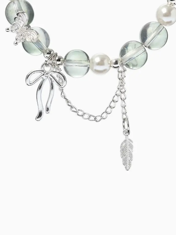 Браслет с подвесками «Сахарный. Перо и бант», d=6 см, шар №10/8, серый в серебре