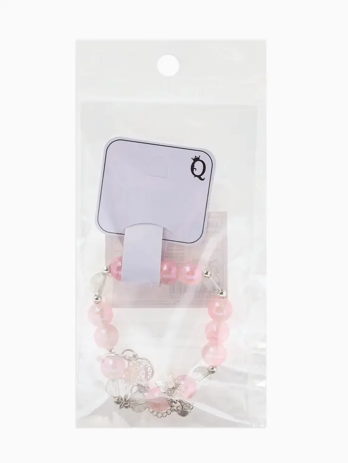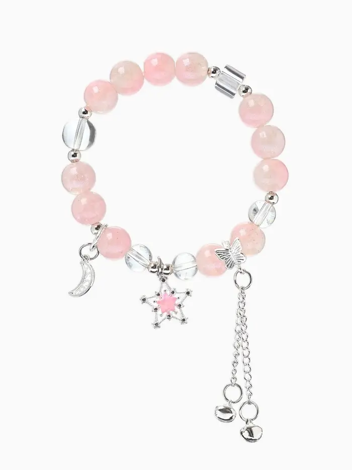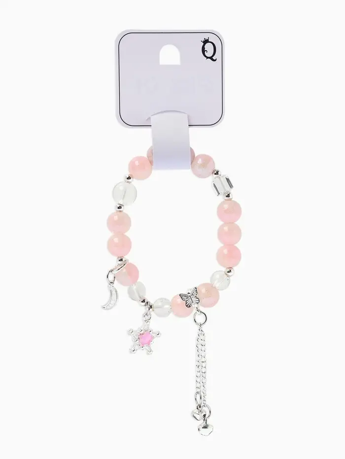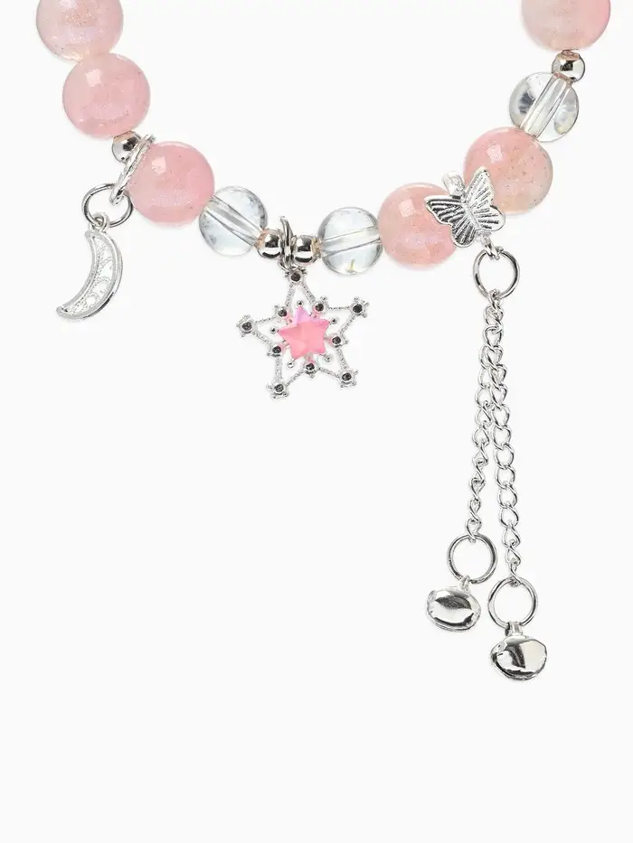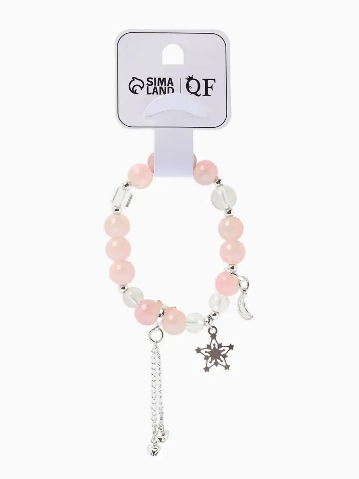 Браслет с подвесками «Сахарный. Ночное небо», d=6 см, шар № 10/8, розовый, белый в серебре