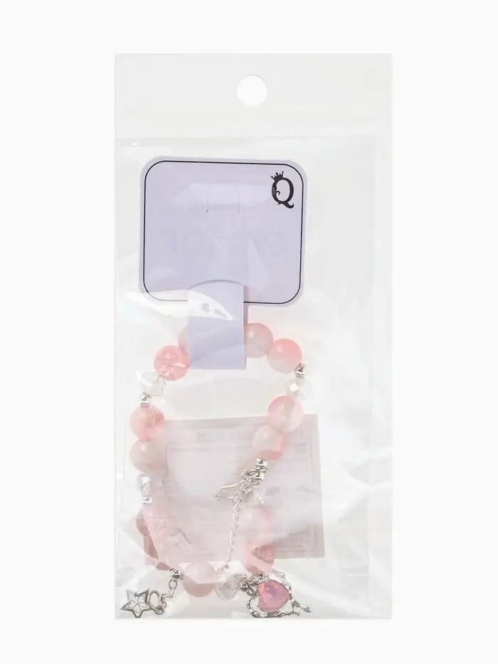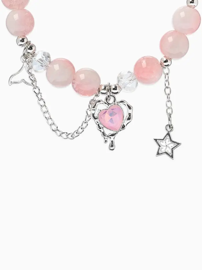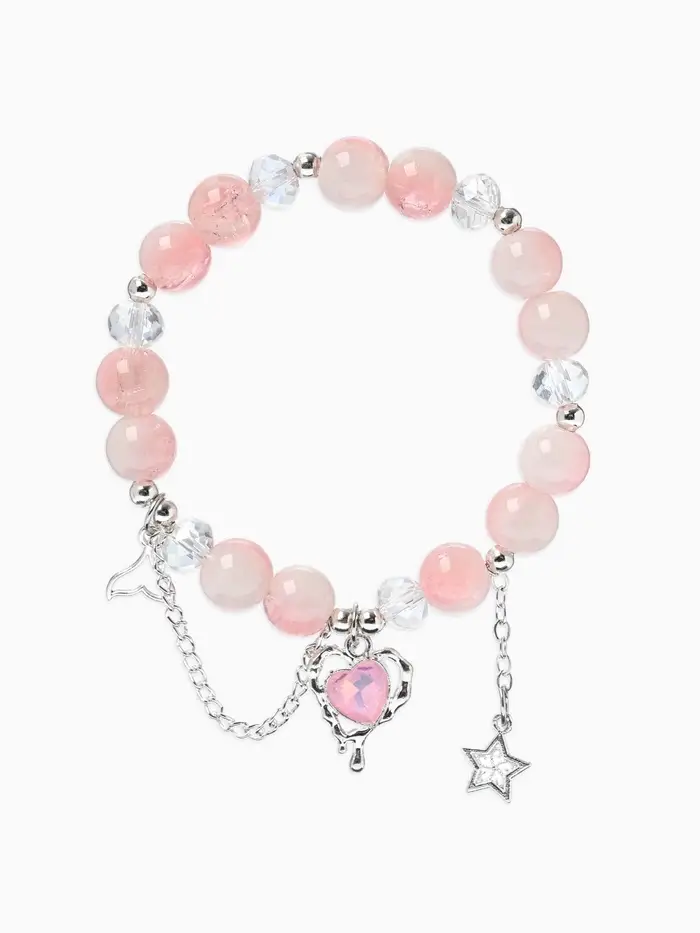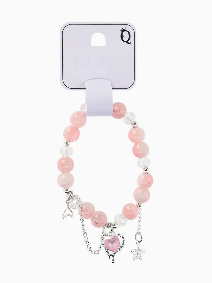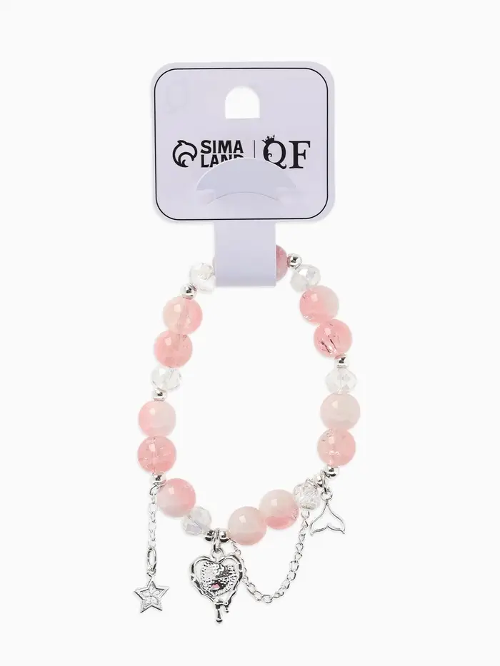 Браслет с подвесками «Сахарный. Сердце текучее», d=6 см, шар № 10/8, белый, розовый в серебре