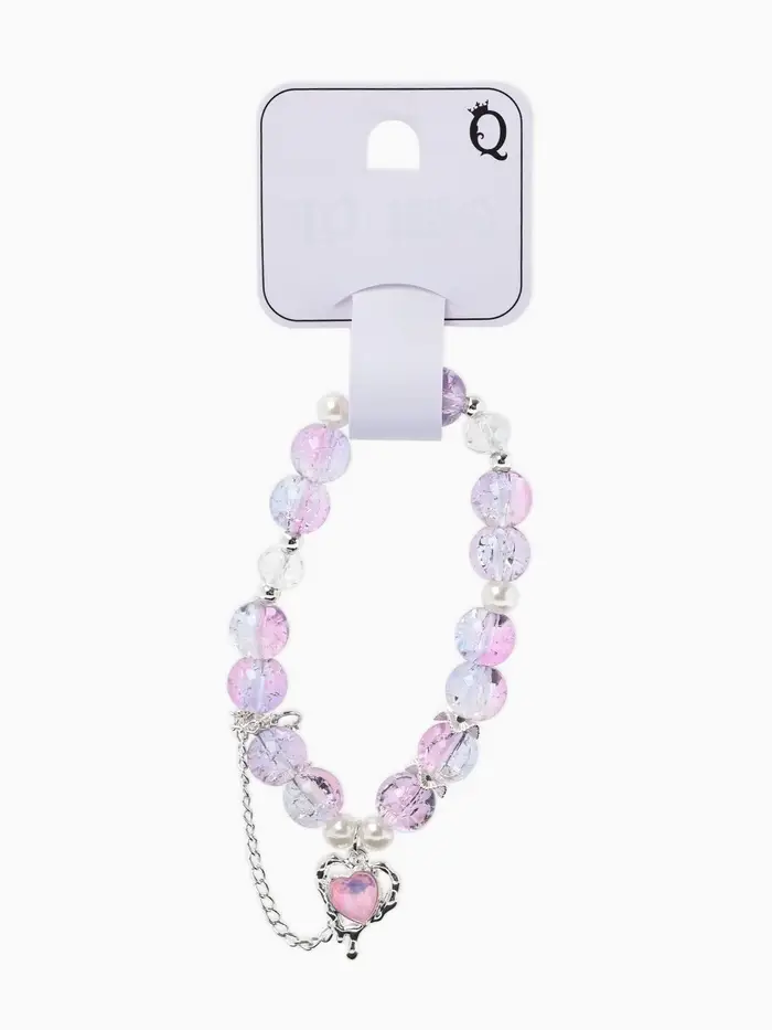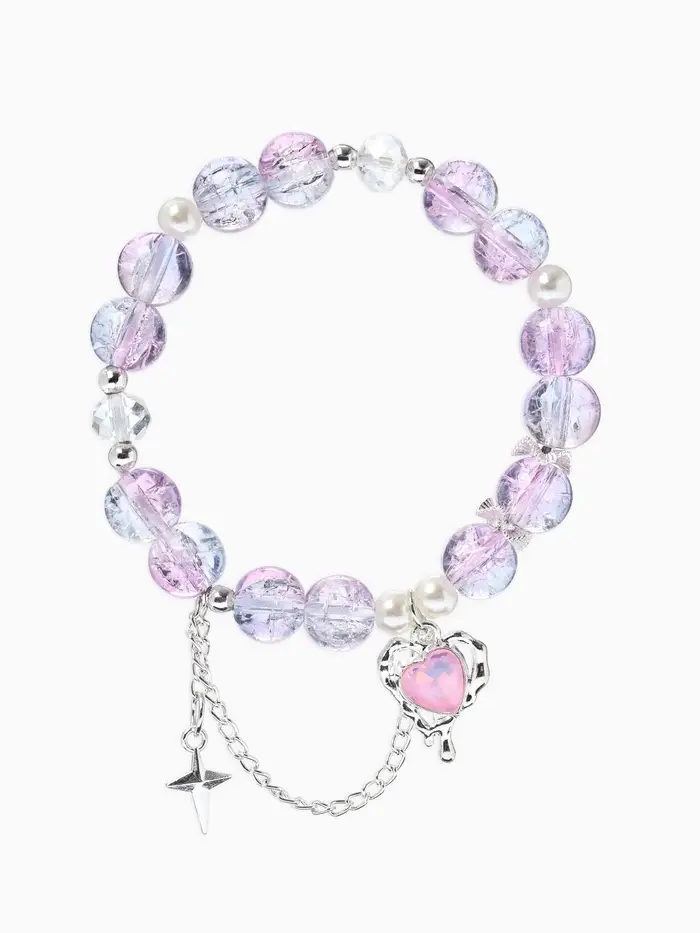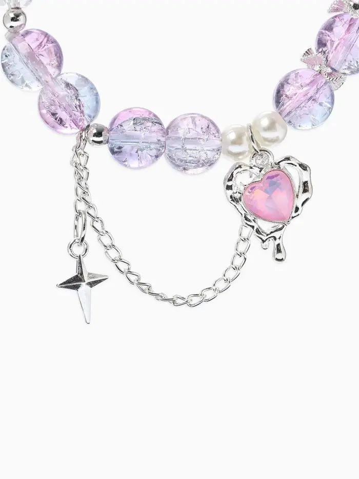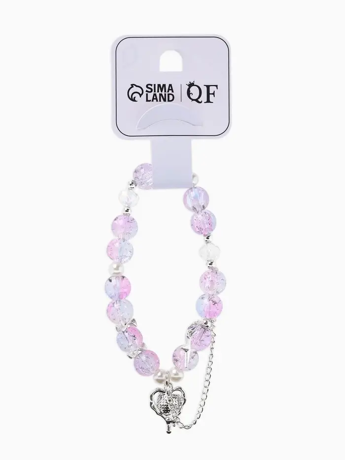 Браслет с подвесками «Сахарный. Сердце, искра», d=6 см, шар № 10/8, розовый, фиолетовый в серебре