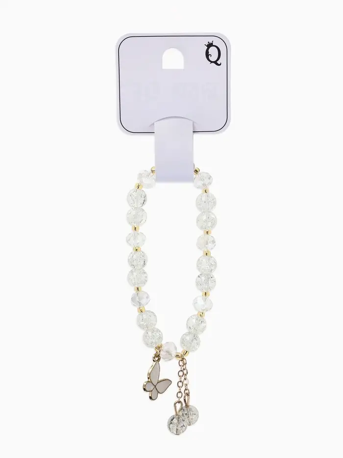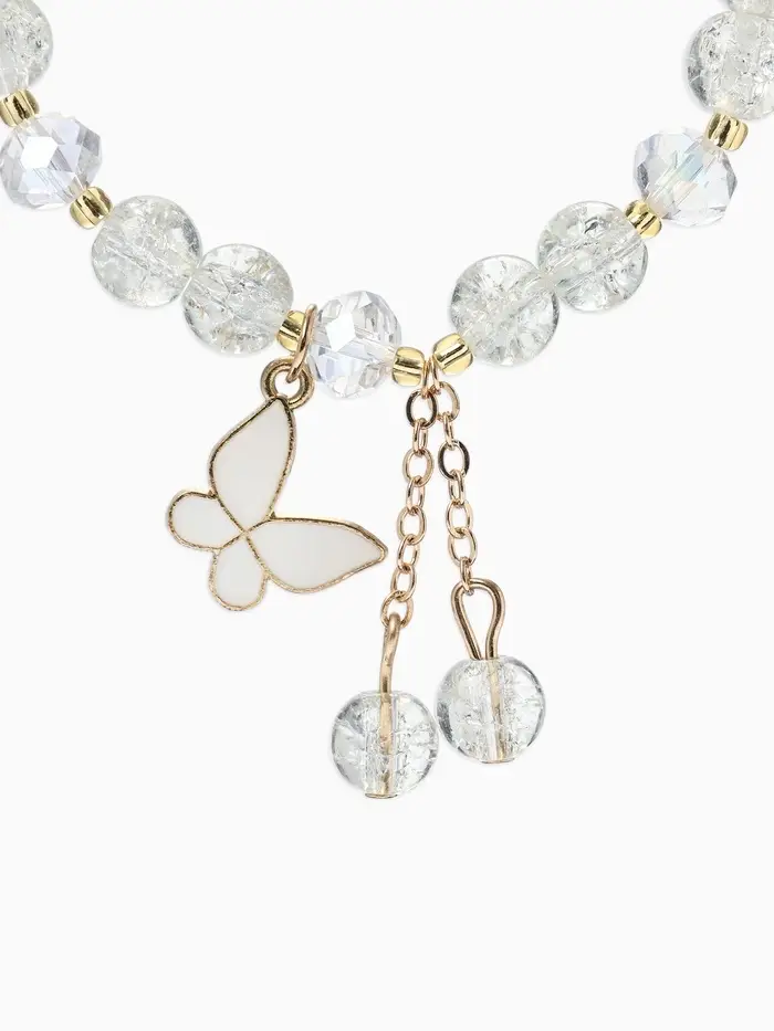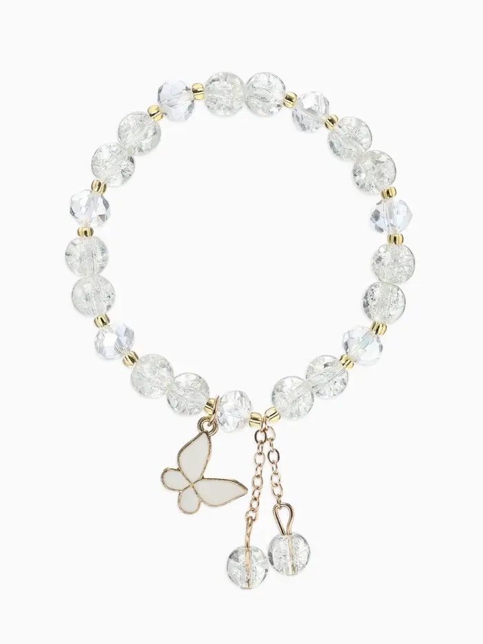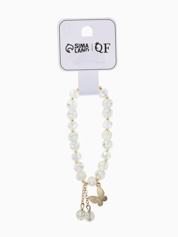 Браслет с подвесками «Сахарный. Бабочка», d=6 см, шар №8, белый в золоте