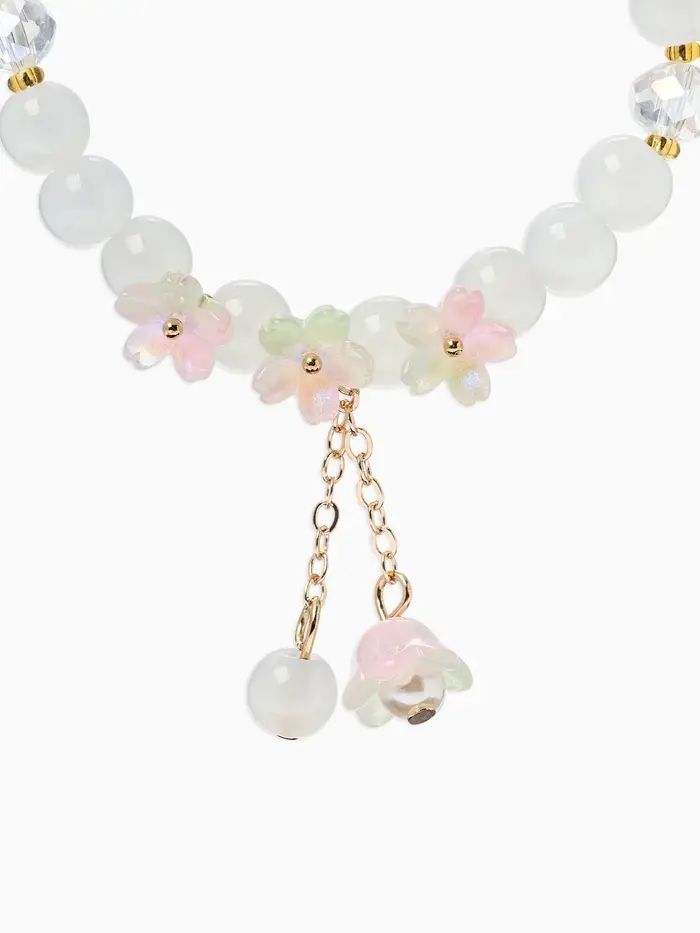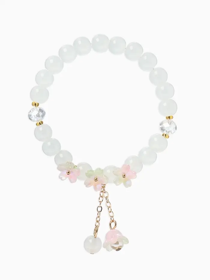 Браслет «Цветы Незабудки», d=6 см, шар №8, белый, розовый