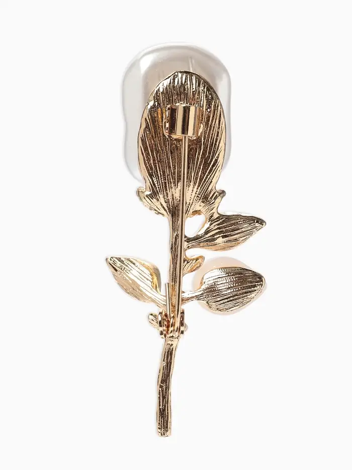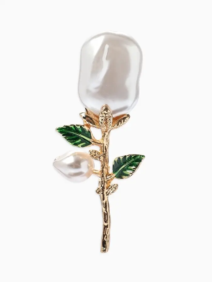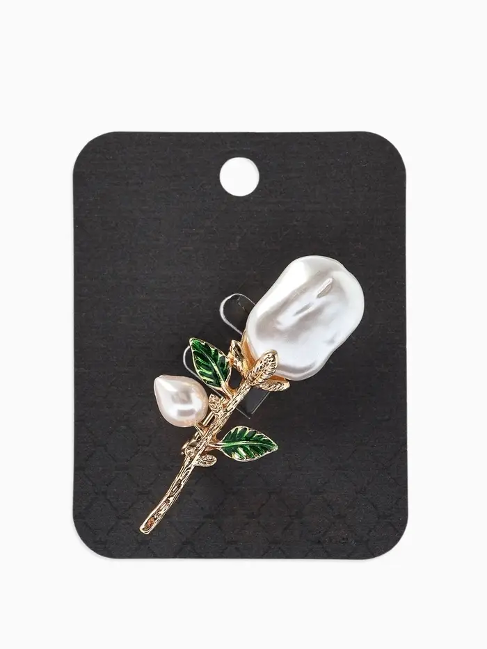 Брошь «Цветок» роза. жемчуг, цвет белый в серебре