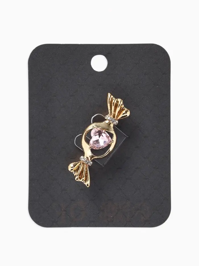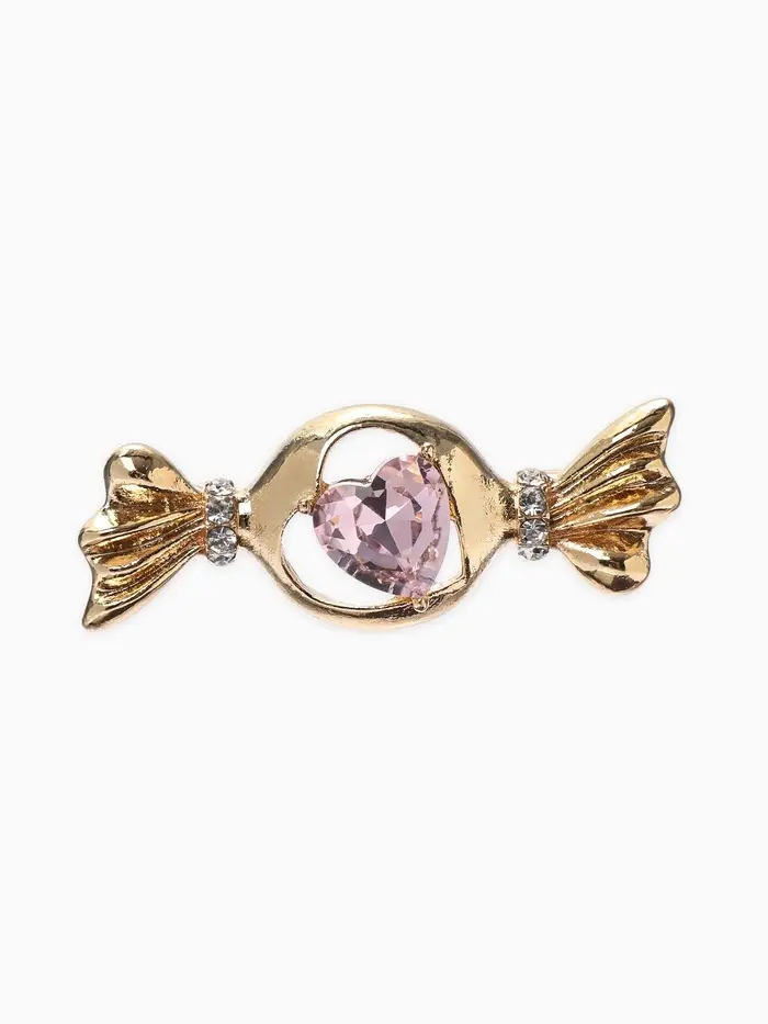 Брошь «Конфета» кристалл сердце, цвет розовый в золоте