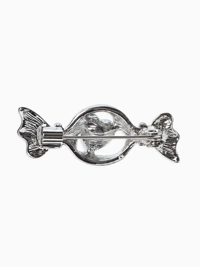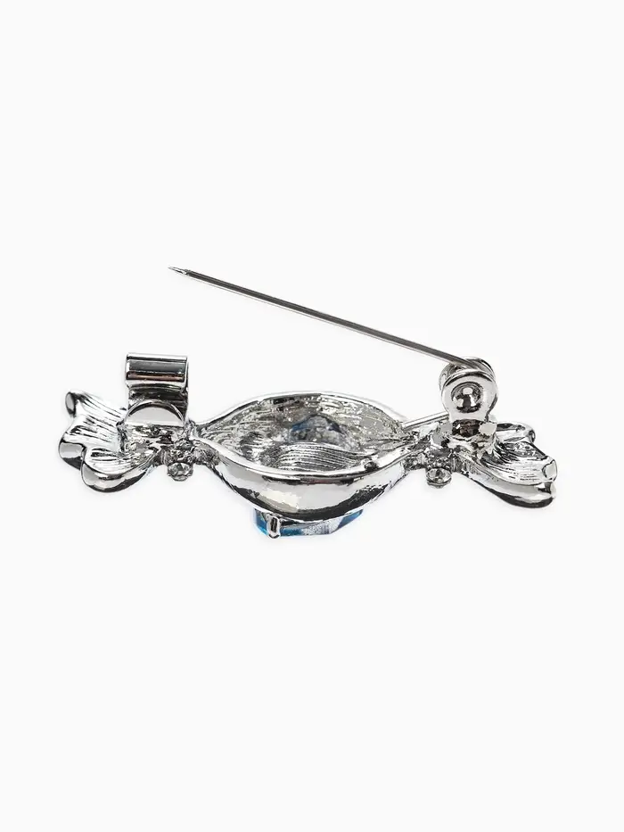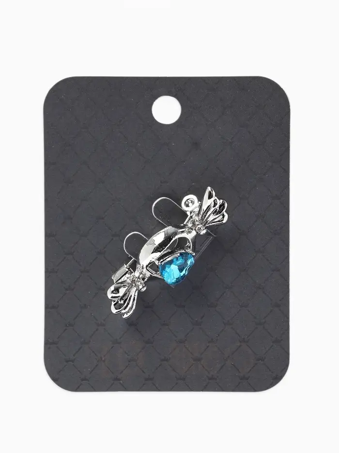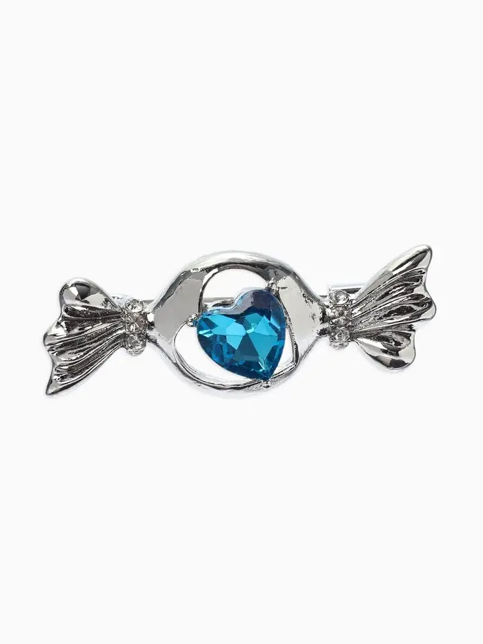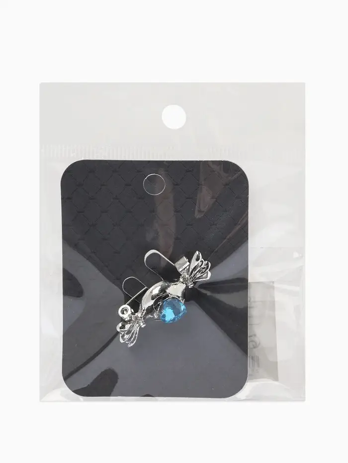Брошь «Конфета» кристалл сердце, цвет голубой в серебре