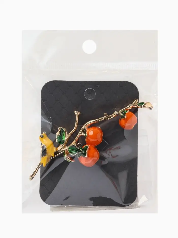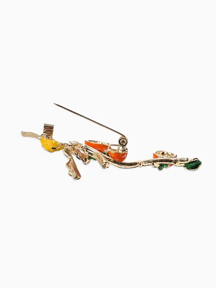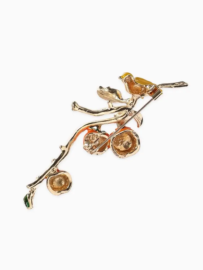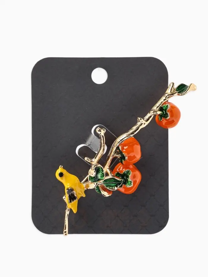 Брошь «Птица на ветке» хурма, цвет оранжевый в золоте