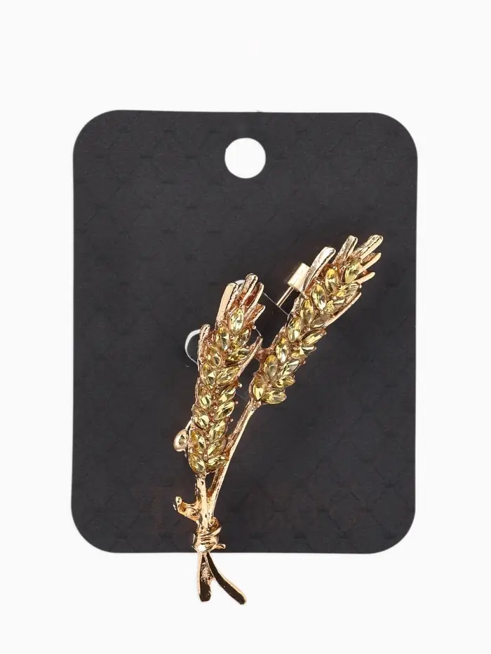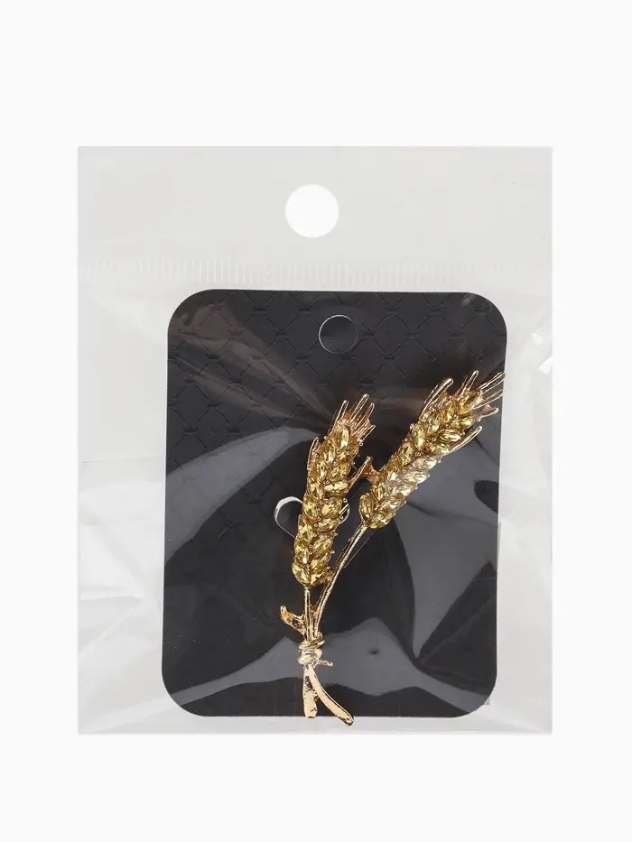 Брошь «Колосья» пшеницы, цвет жёлтый в золоте