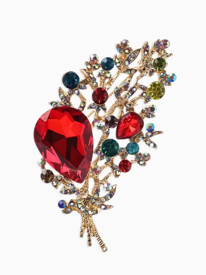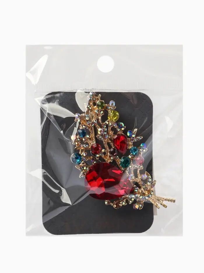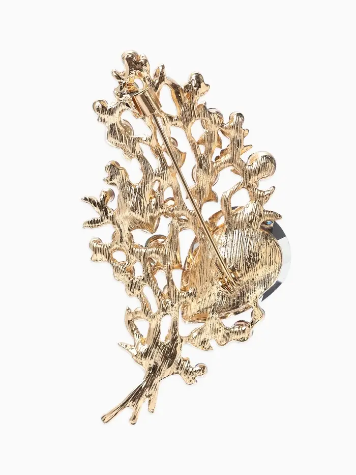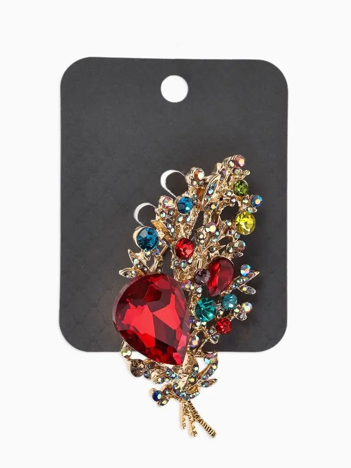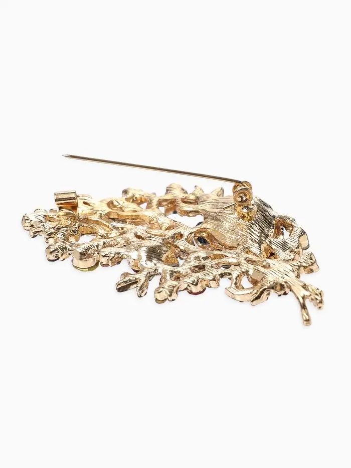 Брошь «Лист» осенний, ажур, стразы, цветная в золоте