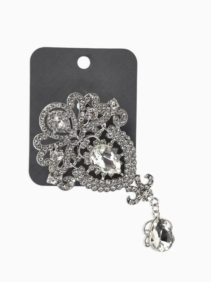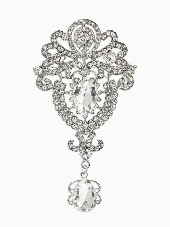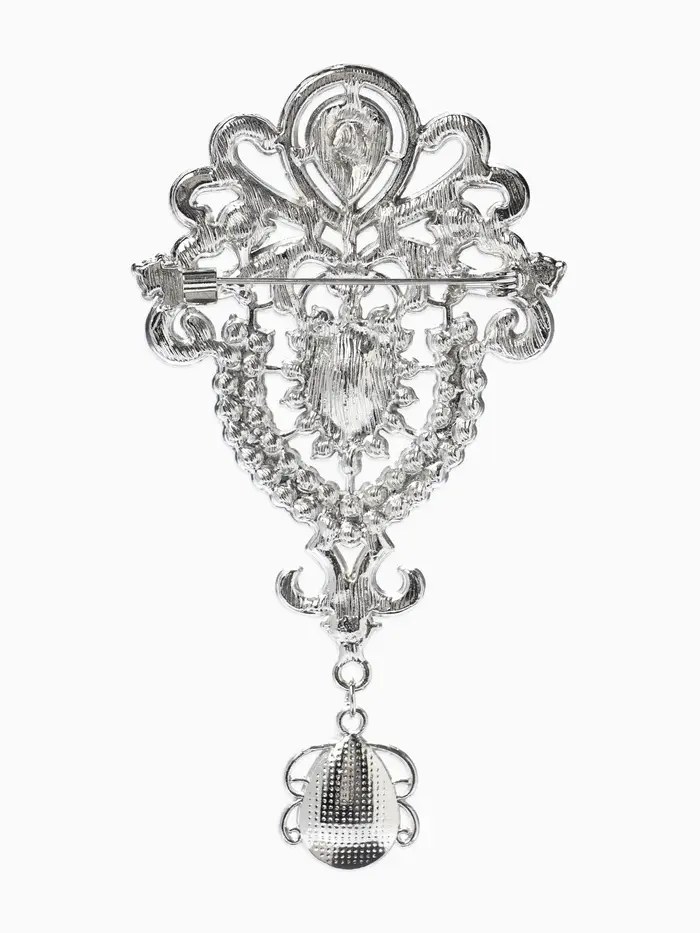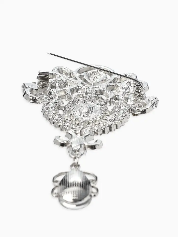 Брошь «Императрица», вензеля, цвет белый в серебре