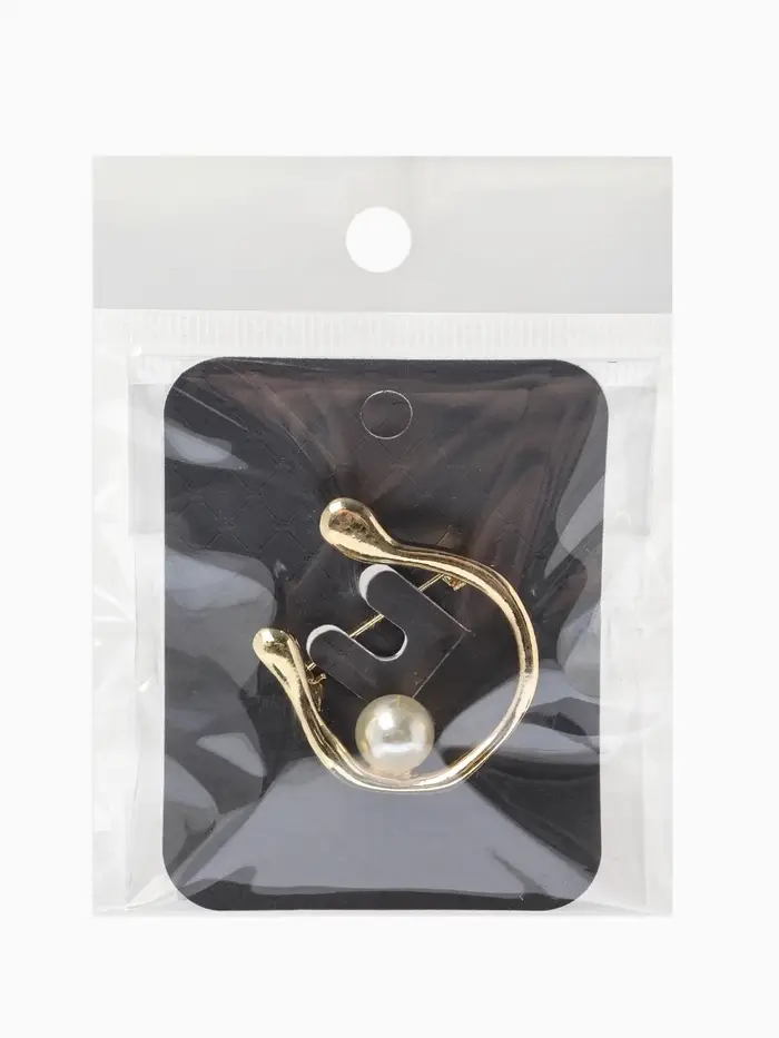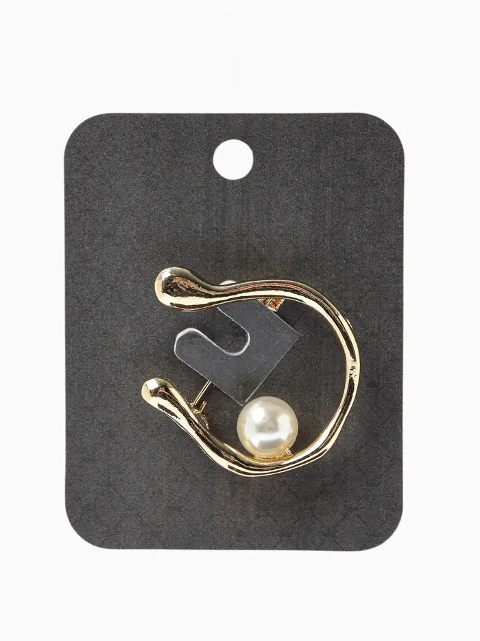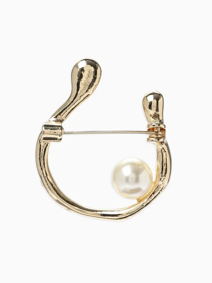 Брошь «Подкова», с бусиной №10, цвет белый в золоте