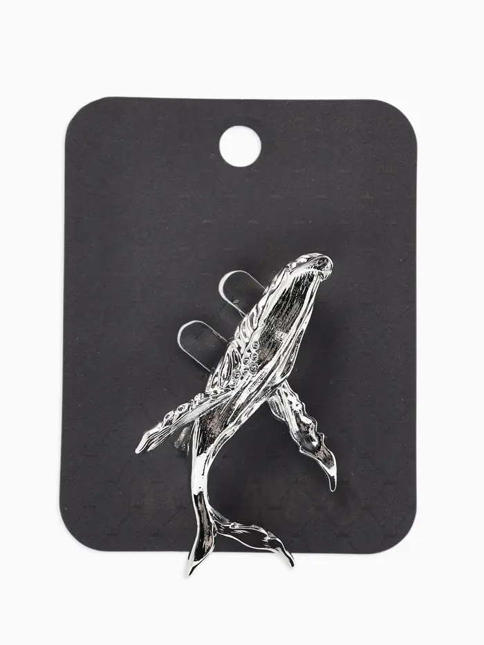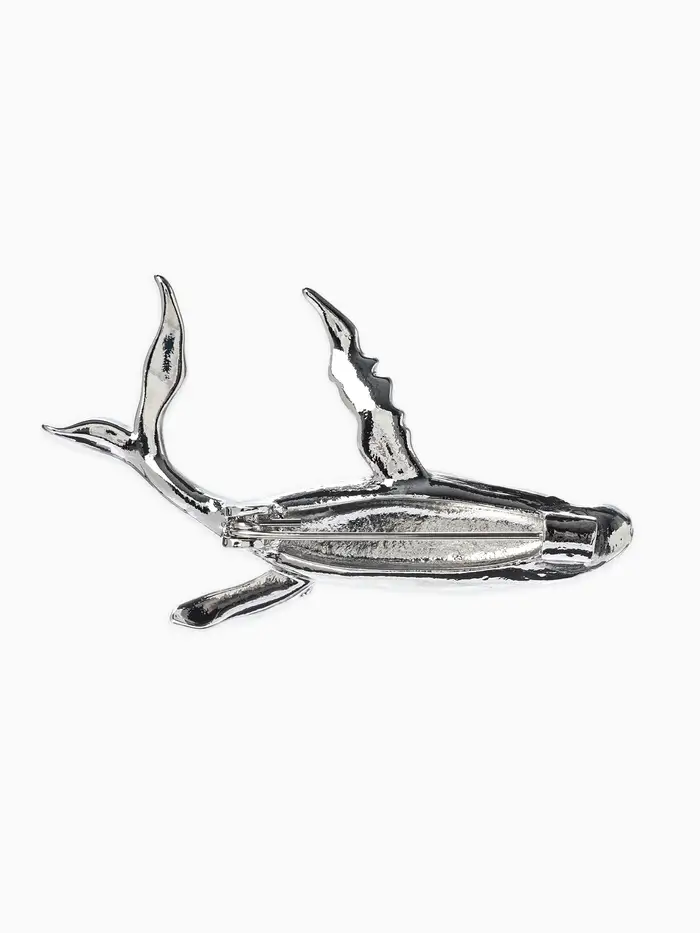 Брошь «Кит» морской, цвет серебро