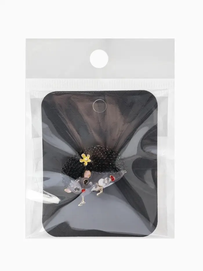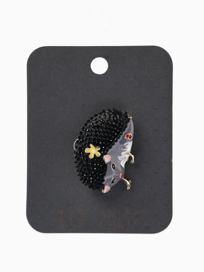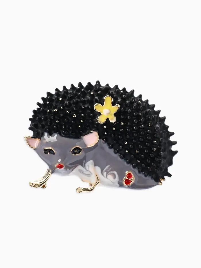 Брошь «Ежик» с цветами, цвет серый в серебре