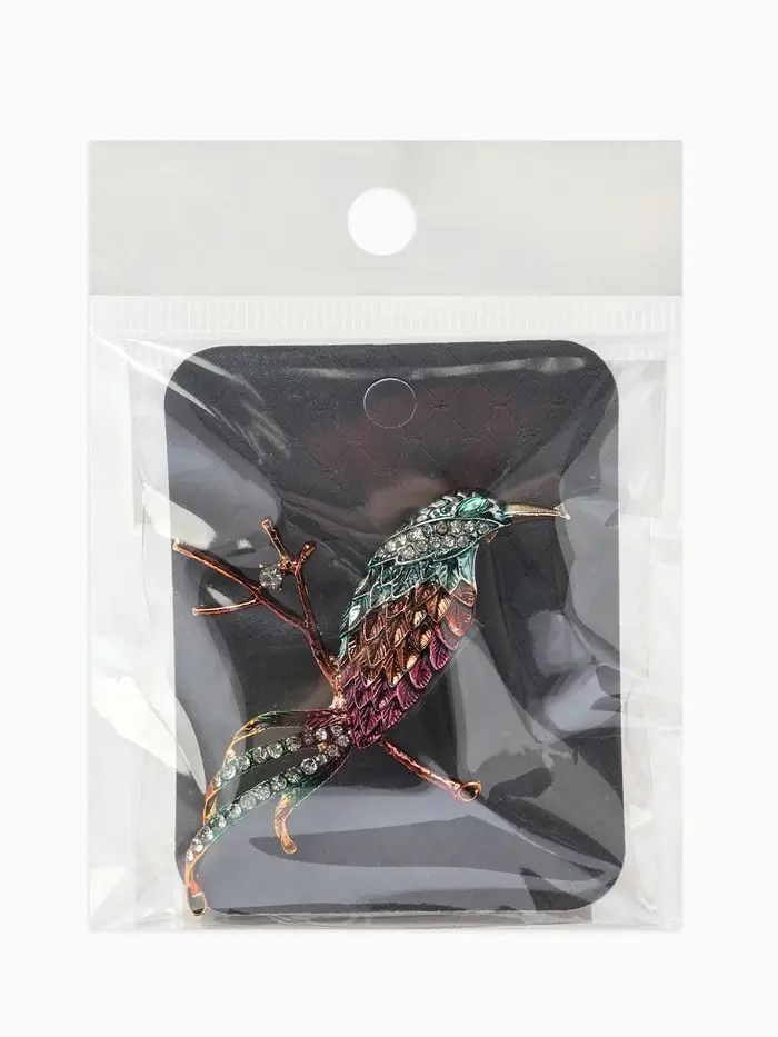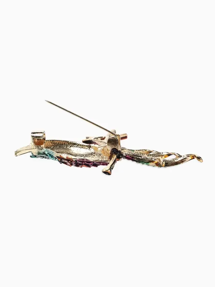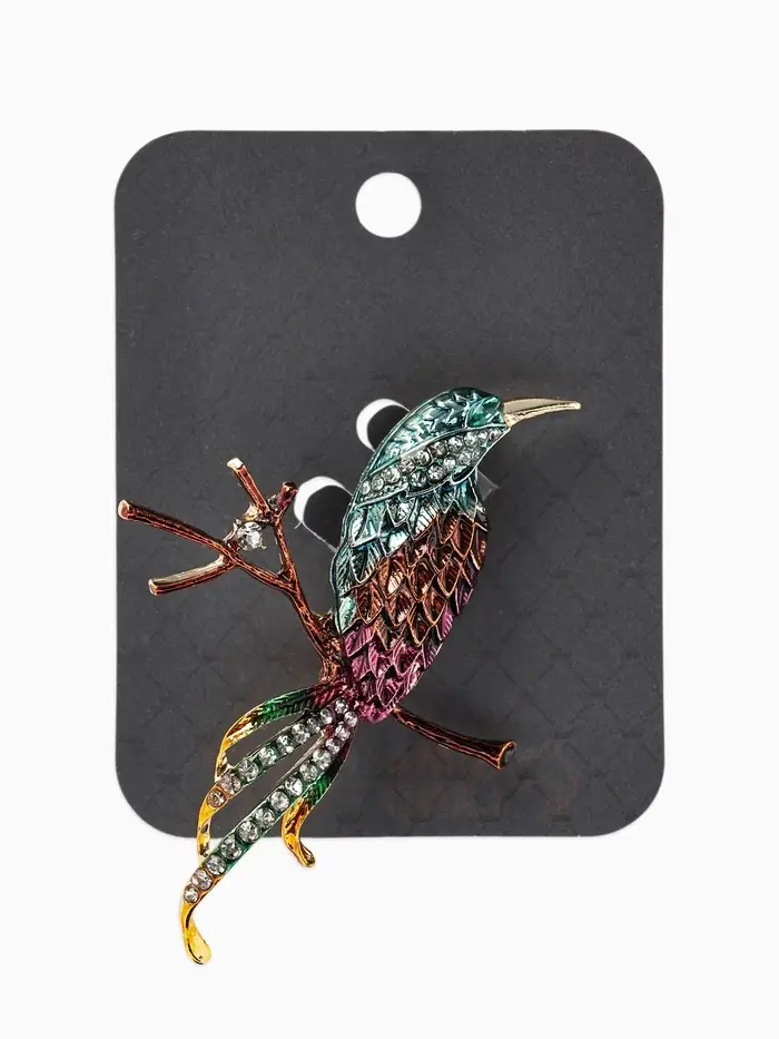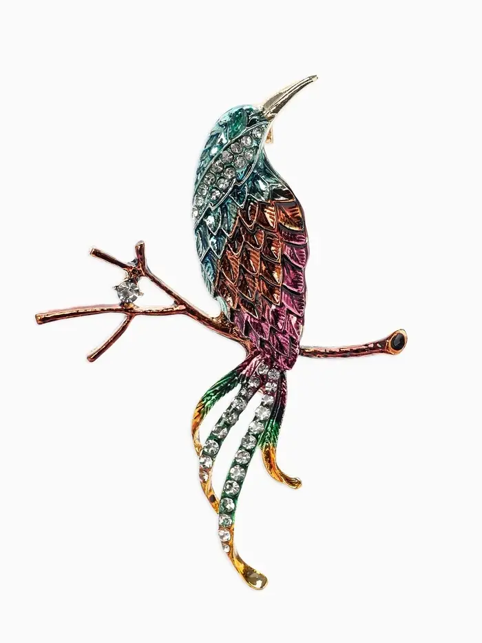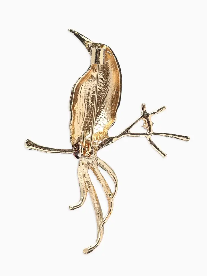 Брошь «Птица» на ветке, цветная в золоте