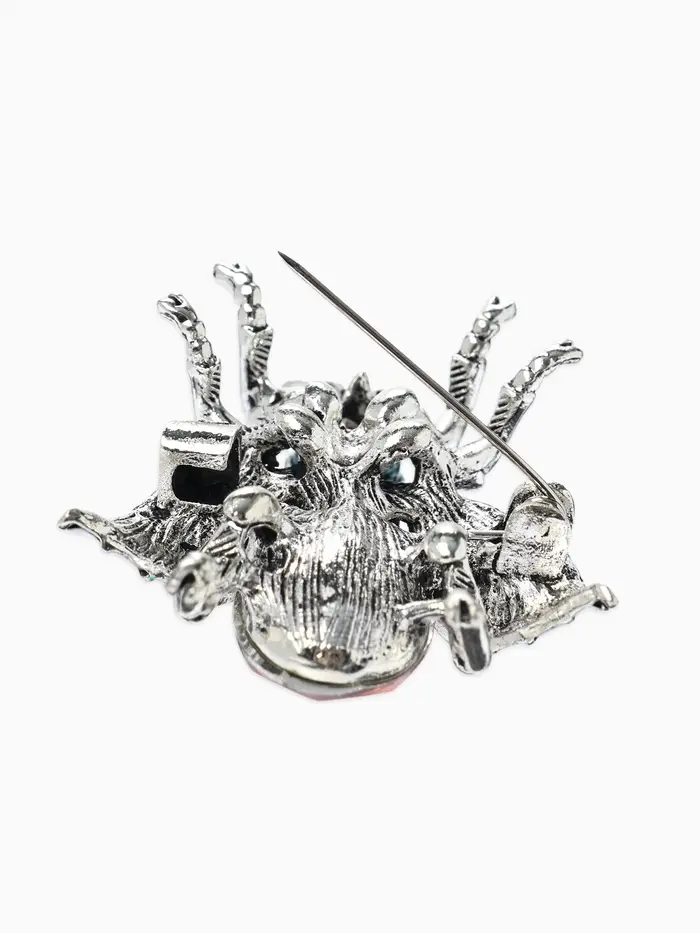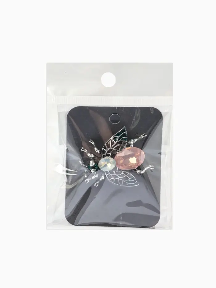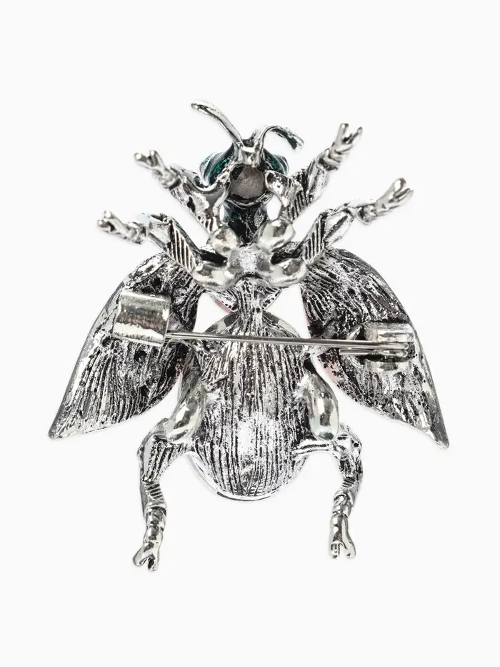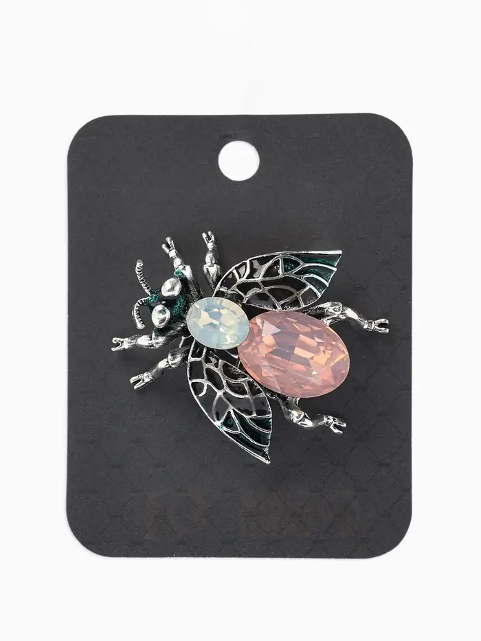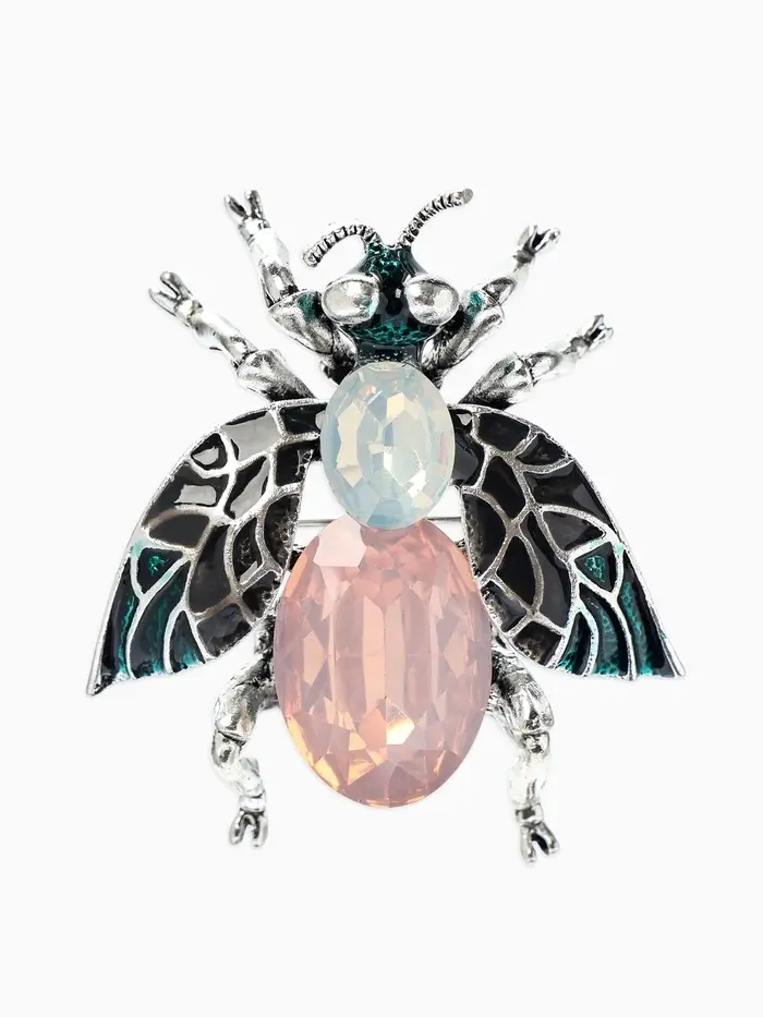 Брошь «Муха", резные крылья, цвет зелёно-розовый в черёном серебре