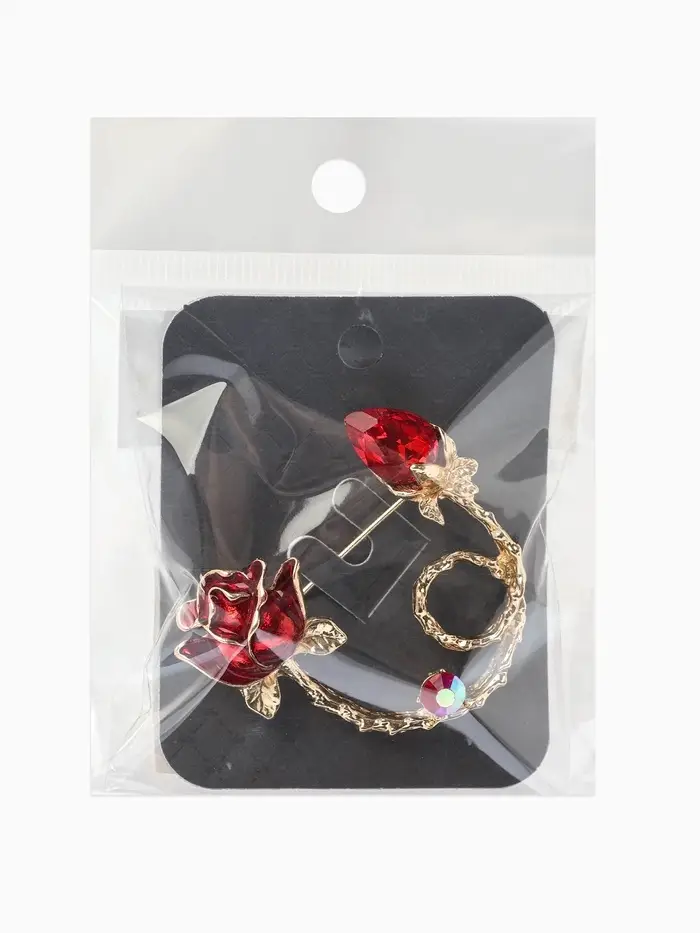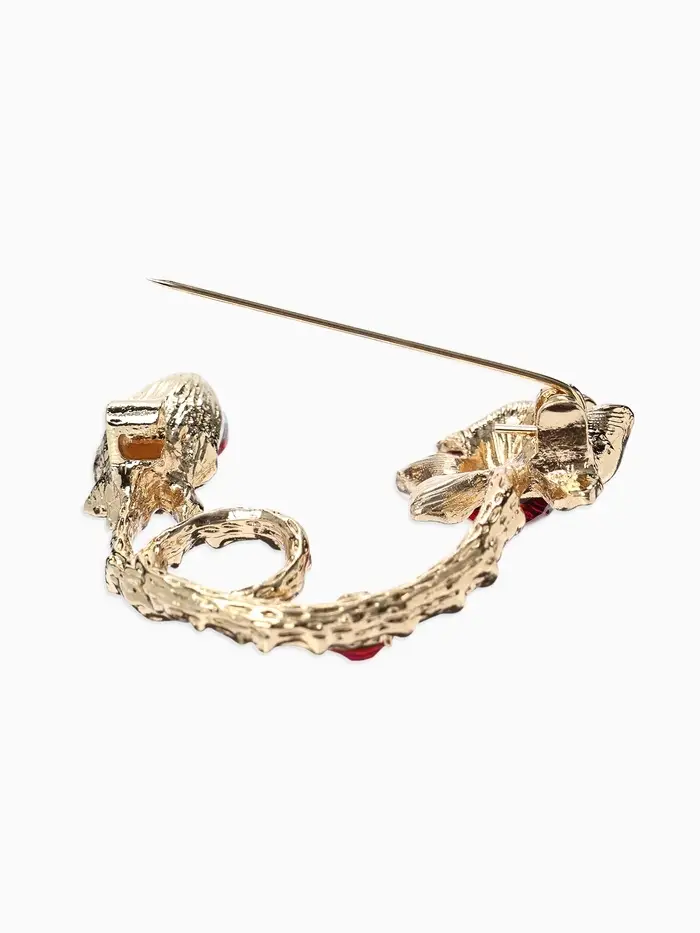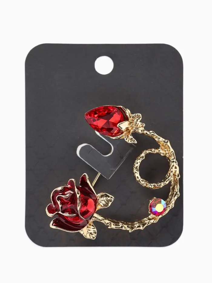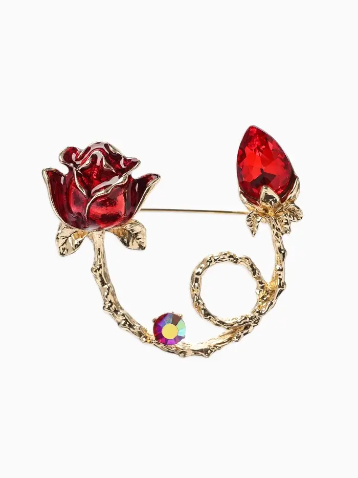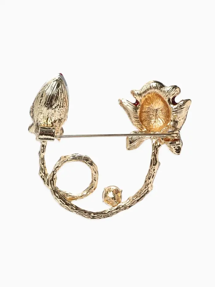 Брошь «Цветок» роза бутон, цвет красный в золоте
