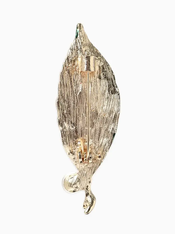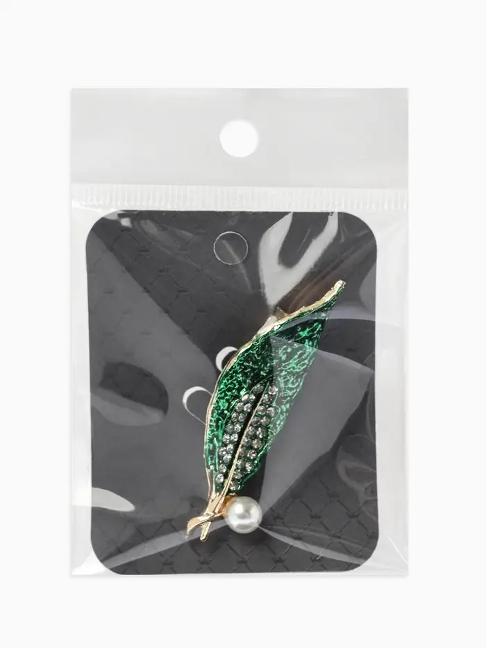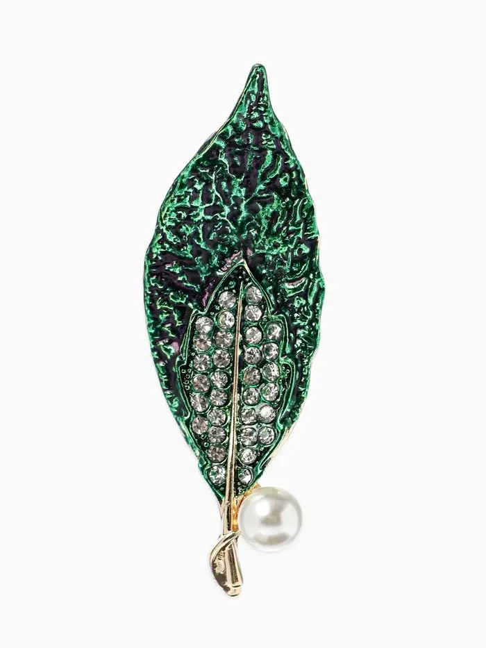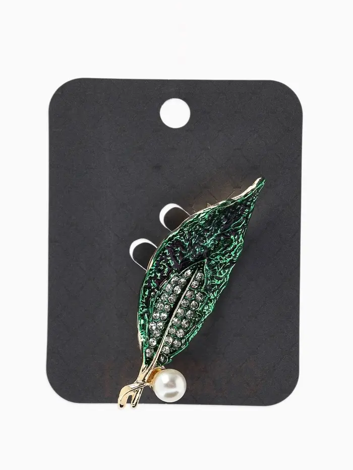 Брошь «Лист» жемчуг, стразы, цвет зелёный в золоте