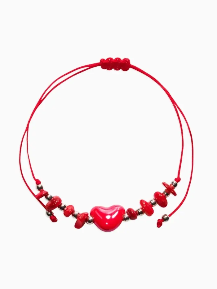 Браслет-оберег «Сердце и крошка - на любовь», d=6 см, красный, бордовый