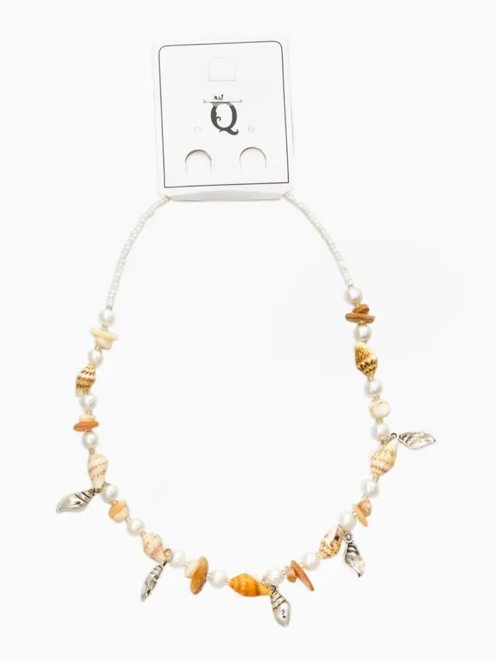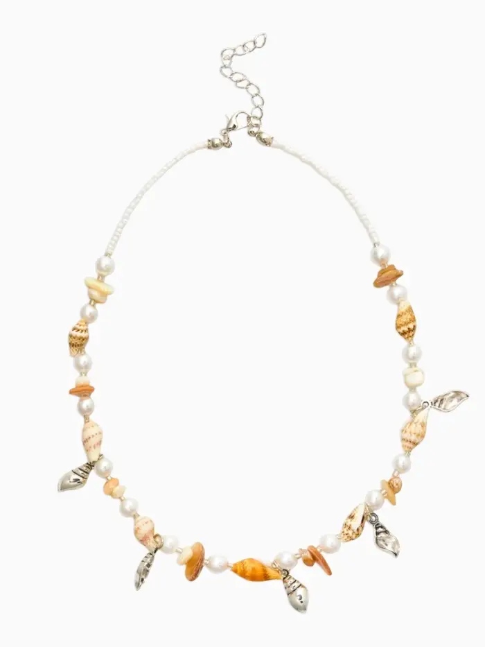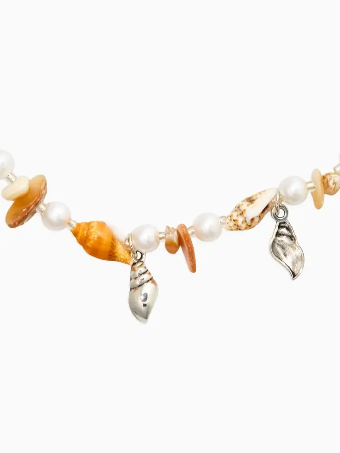 Чокер "Морской мир" из ракушек, цвет белый в серебре