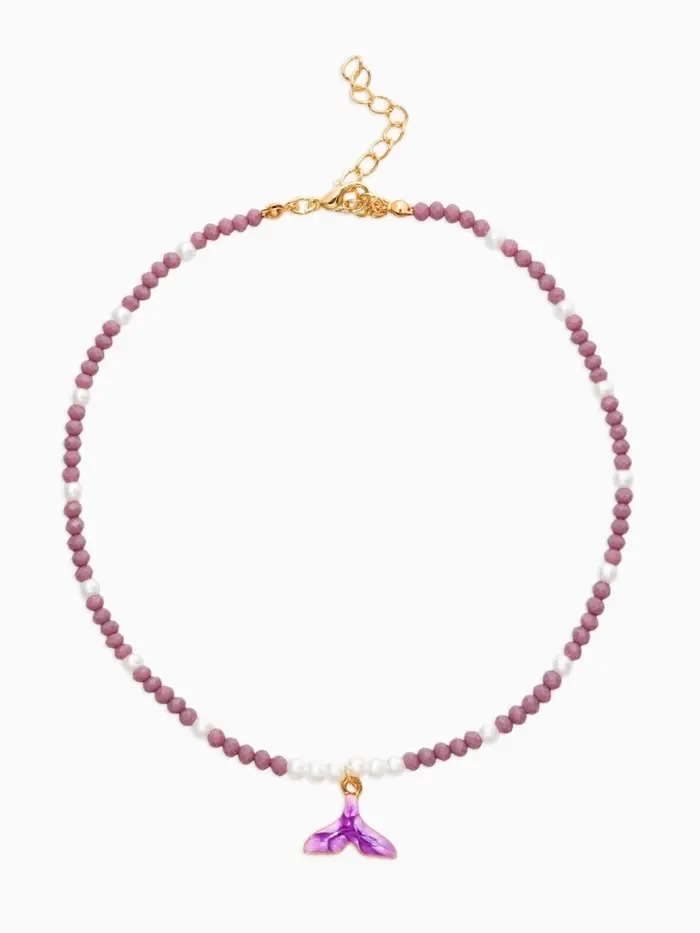 Чокер "Морской мир" хвост русалки с жемчугом, цвет фиолетово-белый в золоте