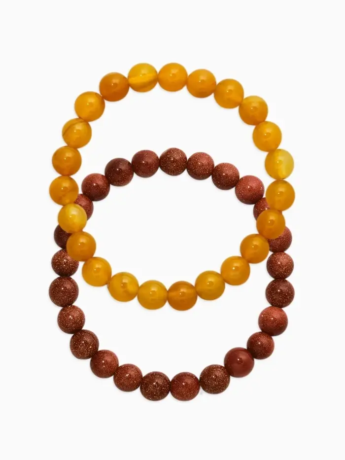 Набор браслетов 2 шт. «Цитрин и Авантюрин коричневый», d=6 см, шар №8, жёлтый, коричневый