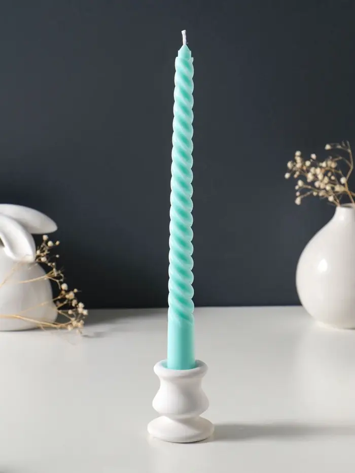 - Классическая форма высокой витой свечи для эстетики и долгого горения.