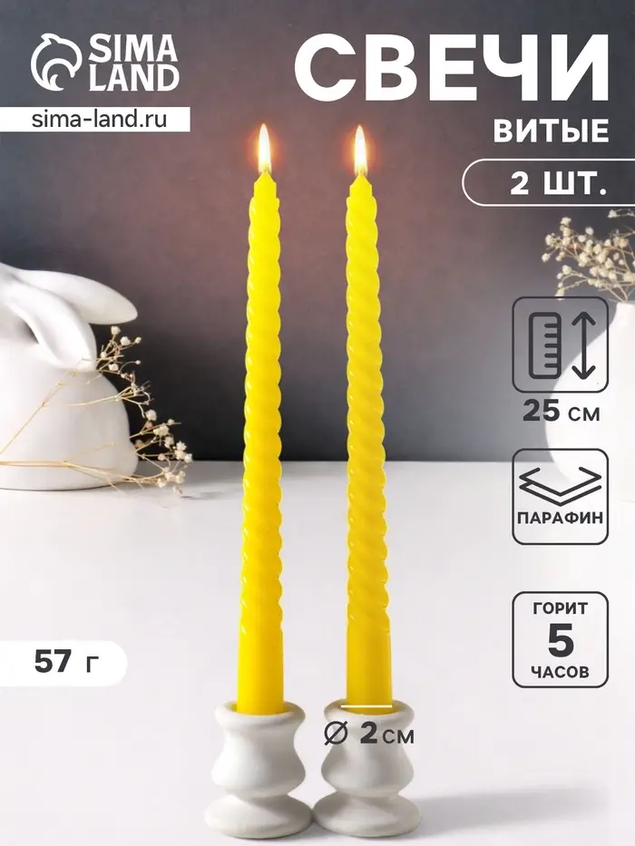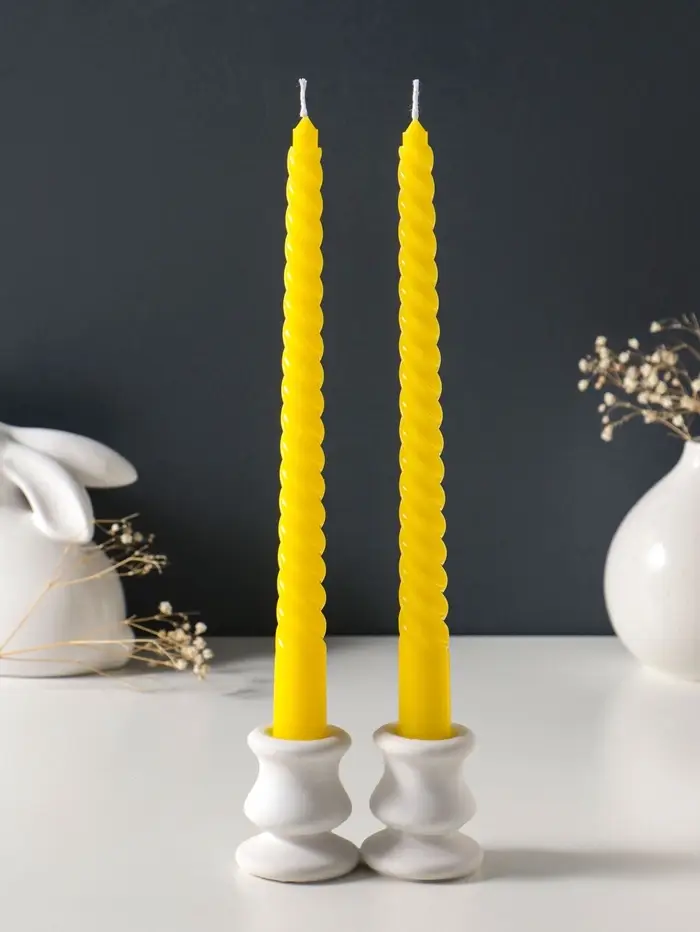 Набор свечей витых 25 см, 2 шт., 57 г, 5 ч, жёлтый