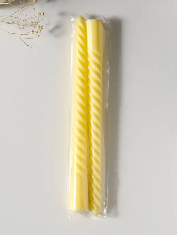 Набор свечей витых 25 см, 2 шт., 57 г, 5 ч, пастельно-жёлтый