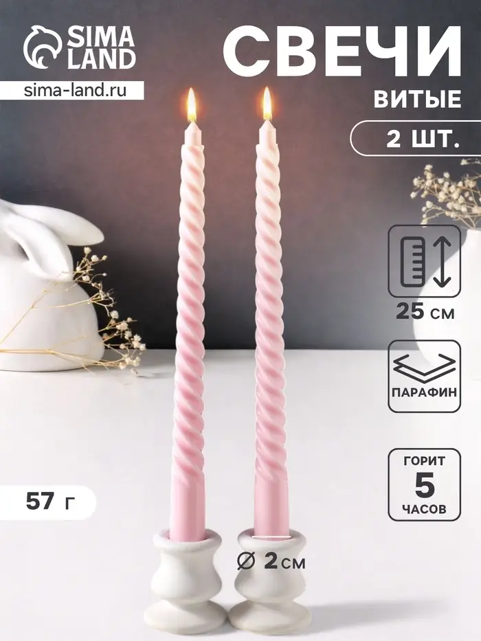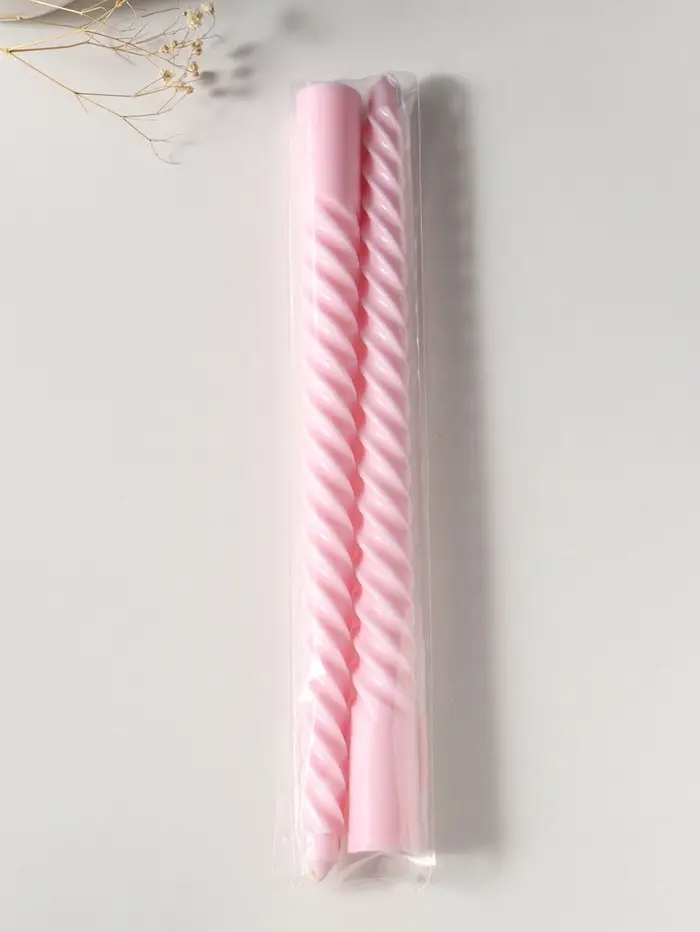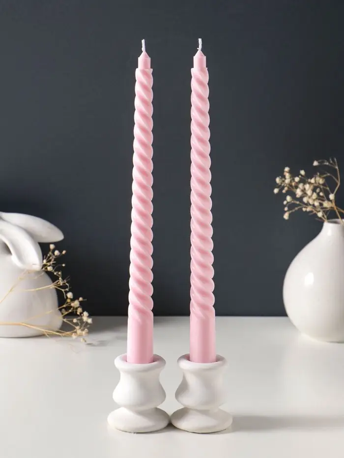 - В комплекте две витые свечи пастельно-розового оттенка.