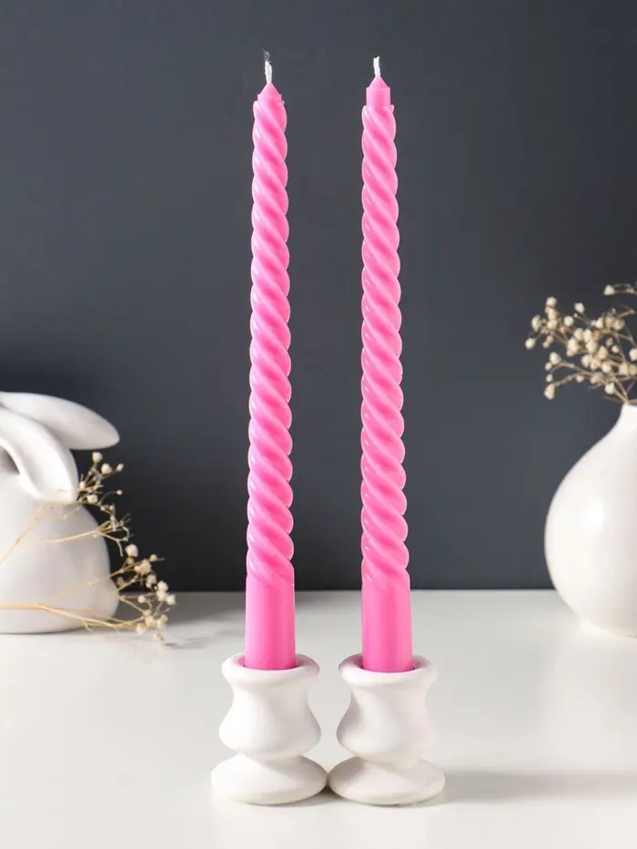 Высокие витые свечи — это готовое решение для романтического ужина, медитации или создания уютного уголка для чтения. Их стройный силуэт и тёплый свет визуально меняют пространство, делая его камерным и наполненным. Простая элегантность этого набора делает его уместным как для повседневного отдыха, так и для особых моментов.