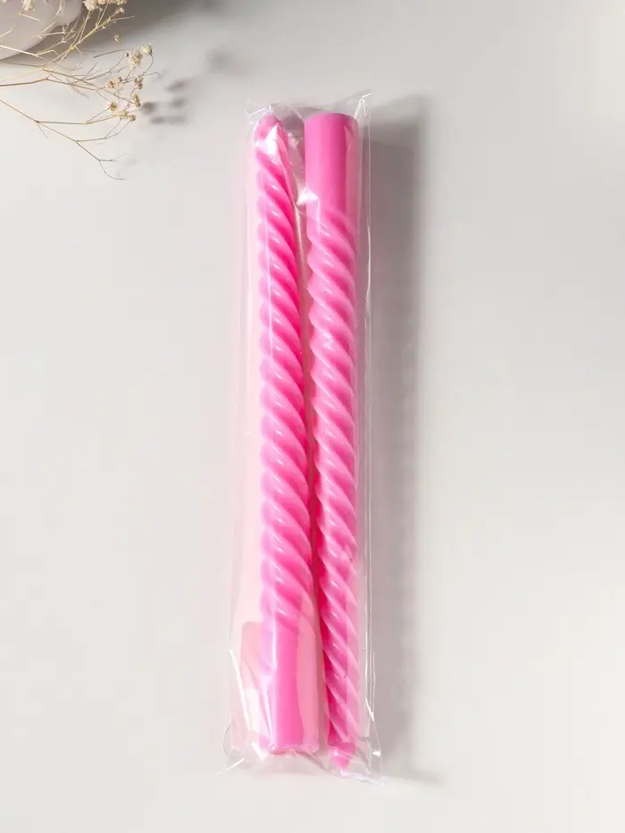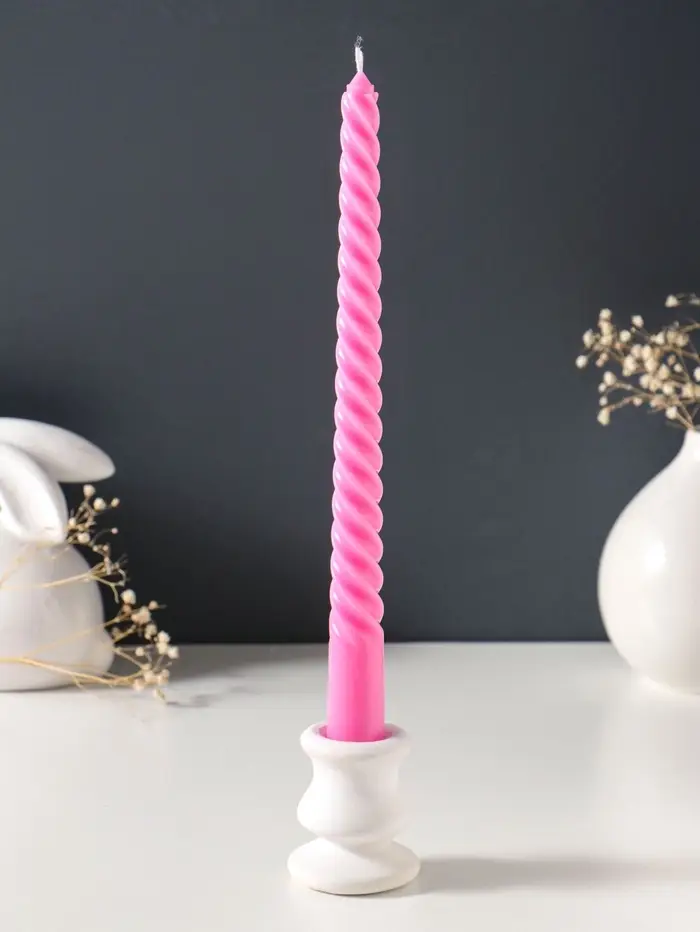 Набор свечей витых 25 см, 2 шт., 57 г, 5 ч, розовый