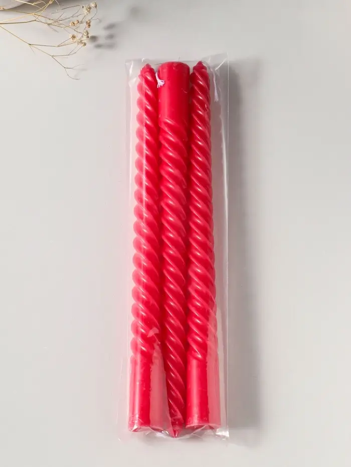 Набор свечей витых 25 см, 3 шт., 57 г, 5 ч, красный