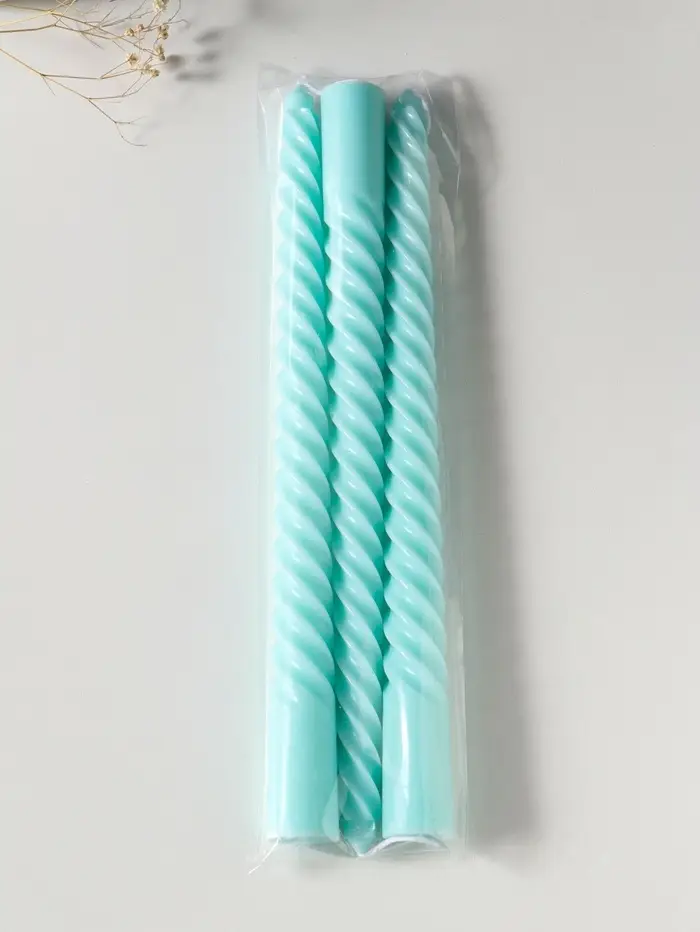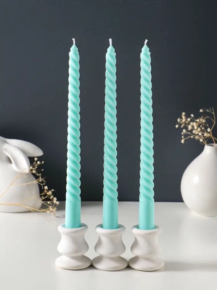 Набор свечей витых 25 см, 3 шт., 57 г, 5 ч, мятный