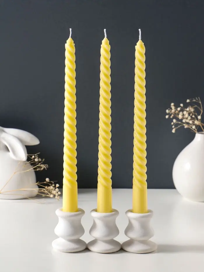 Набор свечей витых 25 см, 3 шт., 57 г, 5 ч, пастельно-жёлтый