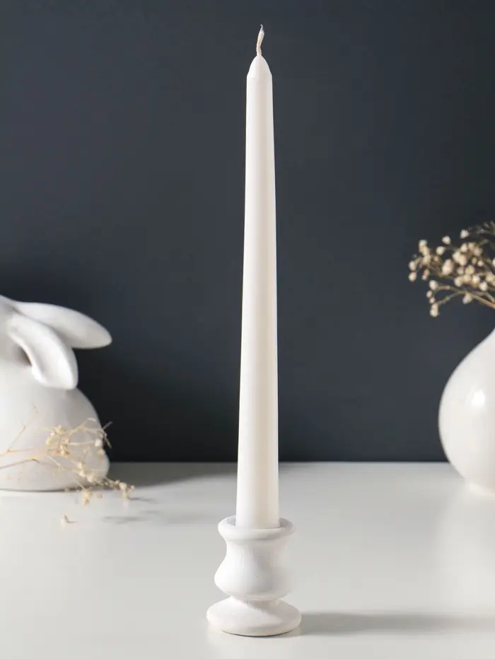 Без аромата и лишних деталей, эта высокая белая свеча фокусирует внимание на игре света. Её пламя — живой, мерцающий акцент для интерьеров в стиле минимализм, скандинавском или классическом. Она не перебивает запахи дома, а лишь мягко подсвечивает обстановку, добавляя ей глубины и уюта в вечерние часы. Идеальный выбор для тех, кто ценит лаконичность и долгое, ровное горение.