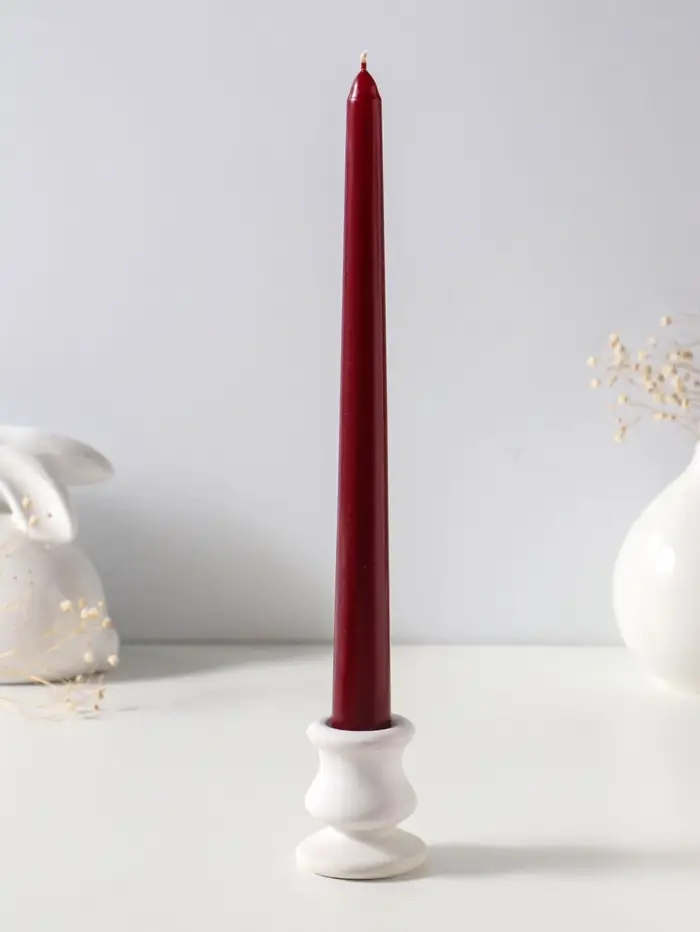 Бордовые свечи излучают тёплый, приглушённый свет, который мягко рассеивает темноту. Их нейтральность позволяет сочетать с любым интерьерным стилем — от строгой классики до современного минимализма. Используйте пару свечей для оформления каминной полки, обеденного стола или комода в спальне. Их продолжительное горение обеспечит настроение на весь вечер.