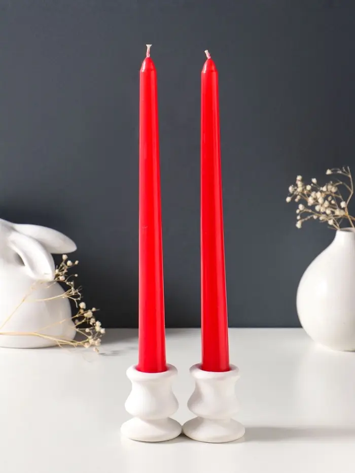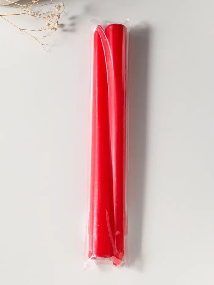 Этот набор из двух высоких красных свечей создаёт в комнате атмосферу уюта и спокойного сияния. Их ровное, продолжительное горение идеально для вечернего отдыха, романтического ужина или создания медитативного настроения. Классическая форма и насыщенный цвет делают свечи самодостаточным элементом декора, который впишется в любой интерьер.