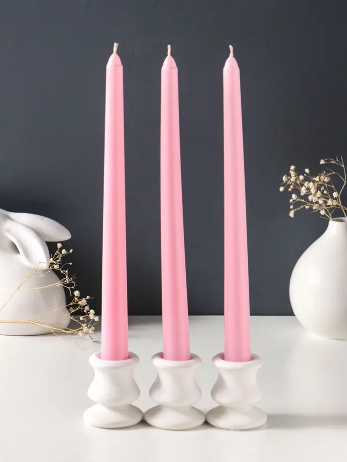 Этот набор высоких свечей создаёт атмосферу спокойствия и утончённой эстетики. Три стройные свечи пастельно-розового оттенка привносят в пространство мягкий, рассеянный свет, идеальный для создания расслабляющей обстановки в вечернее время. Их классическая форма и благородный цвет делают набор универсальным элементом декора, который гармонично дополнит интерьер в стиле неоклассики, прованс или сканди.