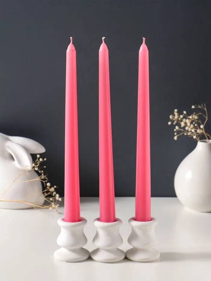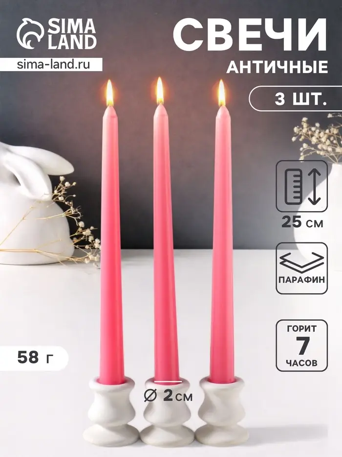 Набор свечей античных 25 см, 3 шт., 58 г, 7 ч, розовый